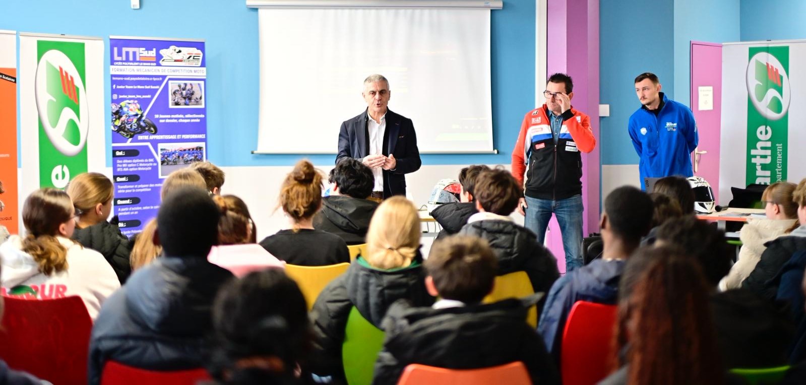 Chaque année, 10 élèves inscrits en post-bac ou BTS mécanique au lycée polyvalent Le Mans Sud, suivent une année de spécialisation en compétition moto au sein du Junior Team Le Mans Sud Suzuki. Depuis 28 ans, gratuite, reconnue par l’Éducation Nationale et en lien direct avec les championnats officiels, cette formation a emmené ces jeunes au plus haut niveau dans différentes catégories et disciplines (Moto GP, MX GP, EWC, moto cross, rallye raid ...).