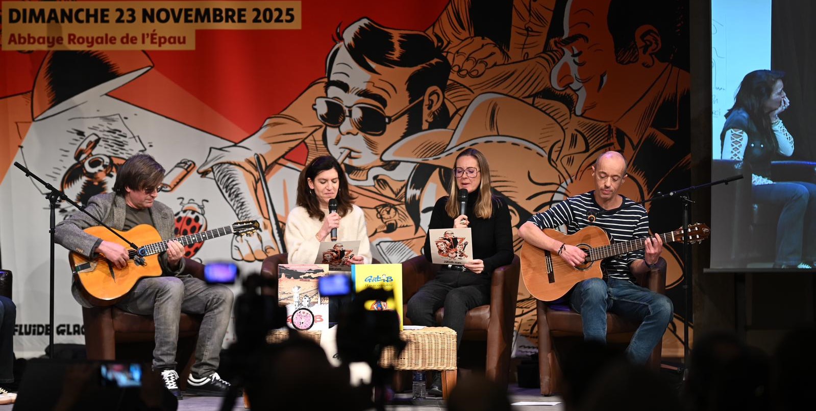 Un rendez-vous culturel autour de l’héritage Gotlib, en compagnie de : Julien Solé (dessinateur) et Arnaud Le Gouëfflec (scénariste), auteurs du biopic BD « Gotlib, une vie en bandessinées », Mo/CDM et François Boucq, qui ont réalisé des dessins en direct. La rencontre a été suivie d’un temps de dédicaces avec les auteurs dans l’Abbatiale pour échanger avec leurs lecteurs. Des animations exceptionnelles ont eu lieu tout au long de l’après-midi, avec Thomas Dutronc, Frédéric Fromet, Charline Vanhoenacker, Richard Gotainer, et Clara Dupont-Monod.