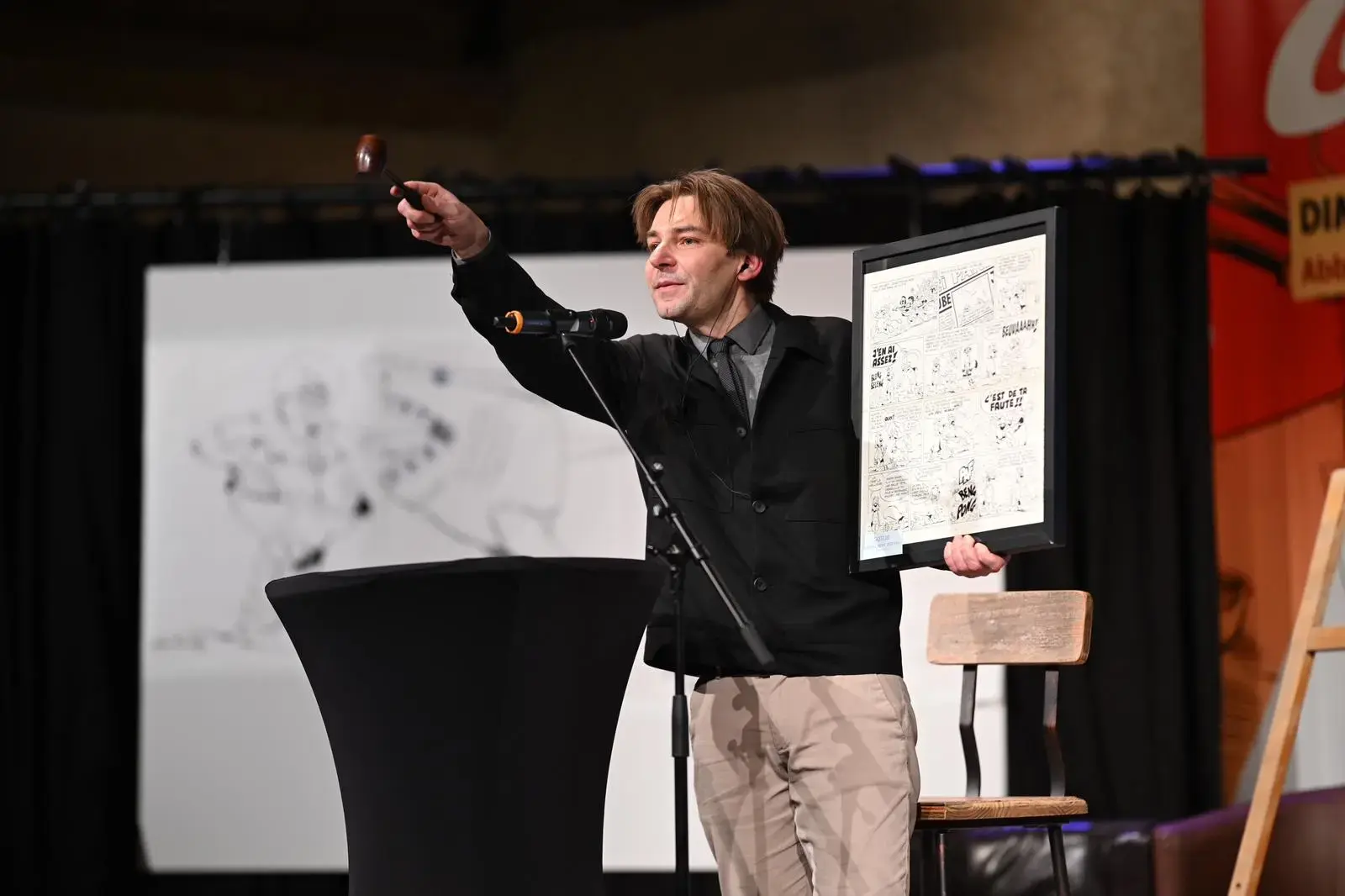 La rencontre s'est poursuivie par une présentation de la sélection du prix Gotlib 2026 (le lauréat sera annoncé le 18 avril 2026 à Paris) et une vente aux enchères !