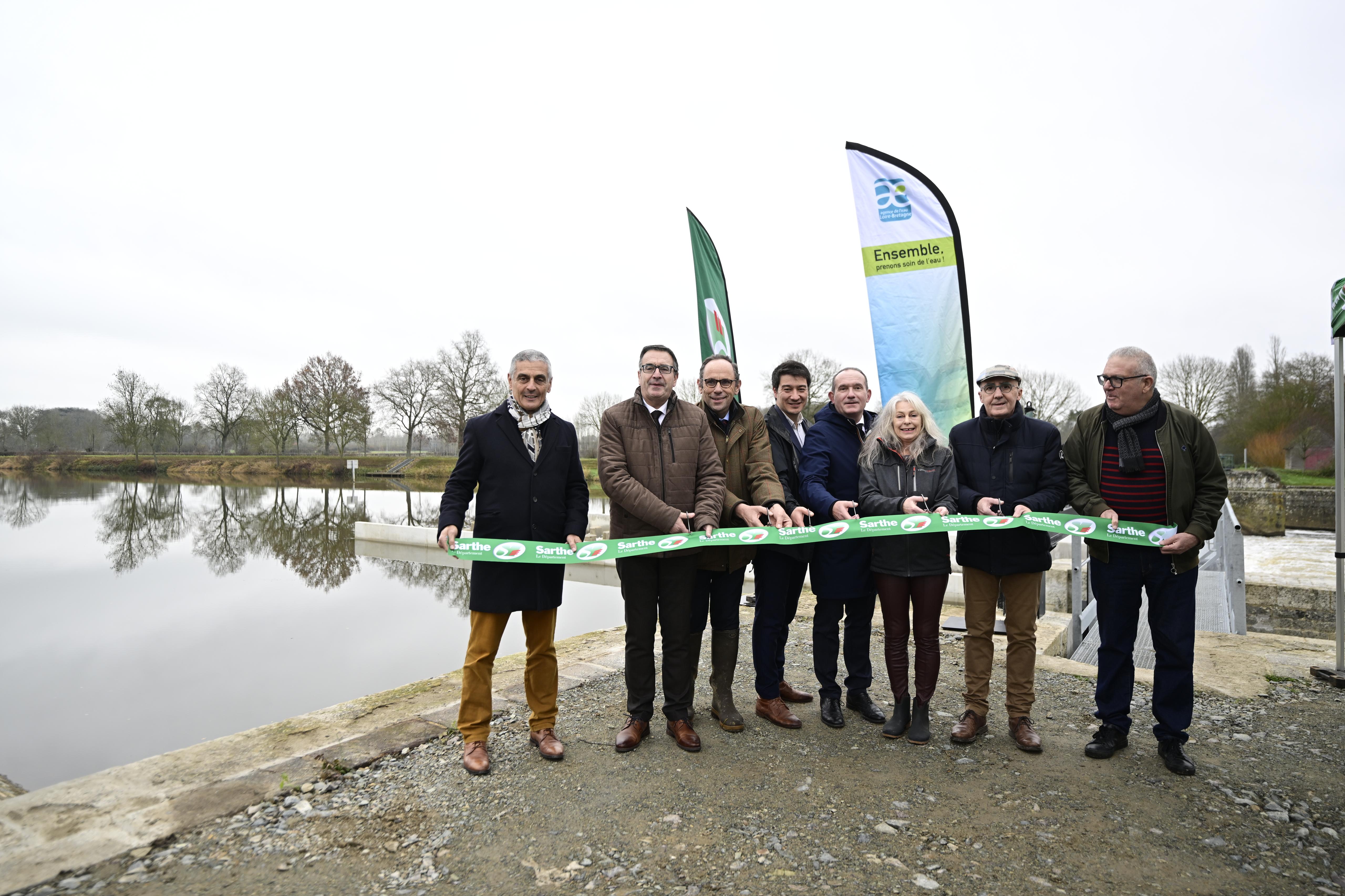 François Boussard, président de la commission Territoires, Agriculture, Développement Durable et Transition énergétique, Emmanuel Franco et Delphine Delahaye, conseillers départementaux du canton, Daniel Chevalier, président de l’Établissement public territorial du bassin de la Sarthe et vice-président du Conseil départemental, mais aussi Dominique Dhumeaux, maire de Fercé-sur-Sarthe, ont inauguré ces nouveaux aménagements.