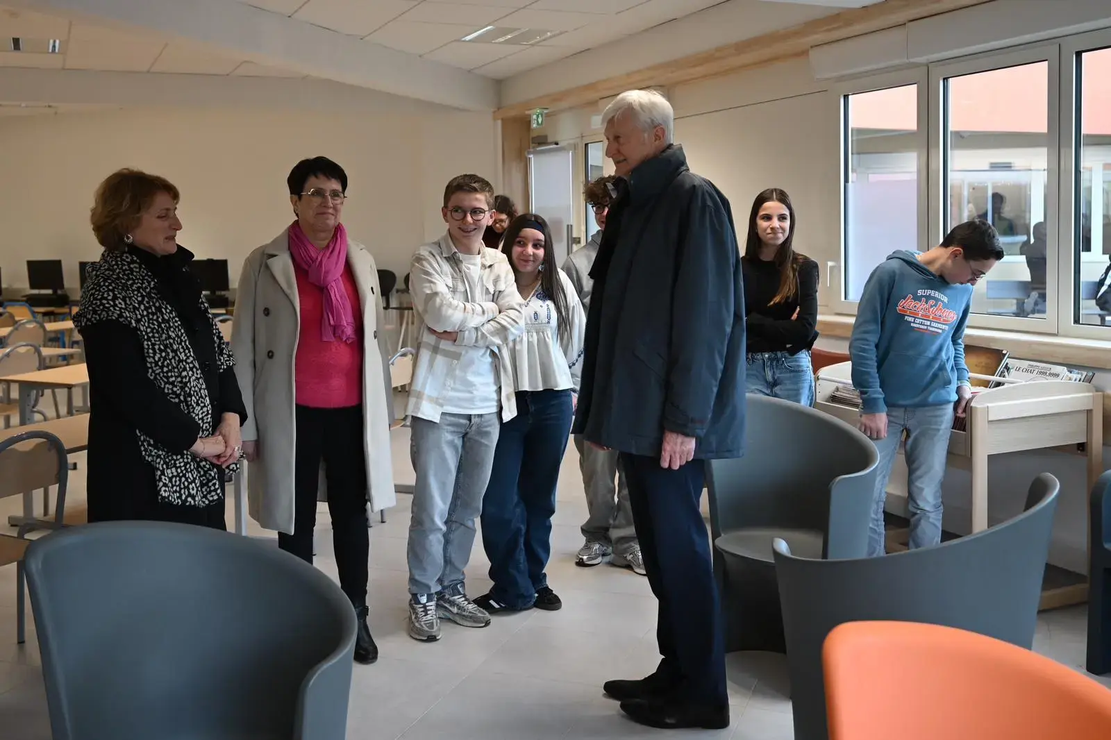 Dominique Le Mèner, Président du Conseil départemental, Françoise Lelong, conseillère départementale du canton, Anthony Trifaut, président de la commission Jeunesse, Éducation, Citoyenneté et Enseignement supérieur, ainsi que Dominique Poglio, inspectrice de l’académie de Nantes, ont visité les espaces réaménagés dans le cadre de cette restructuration.