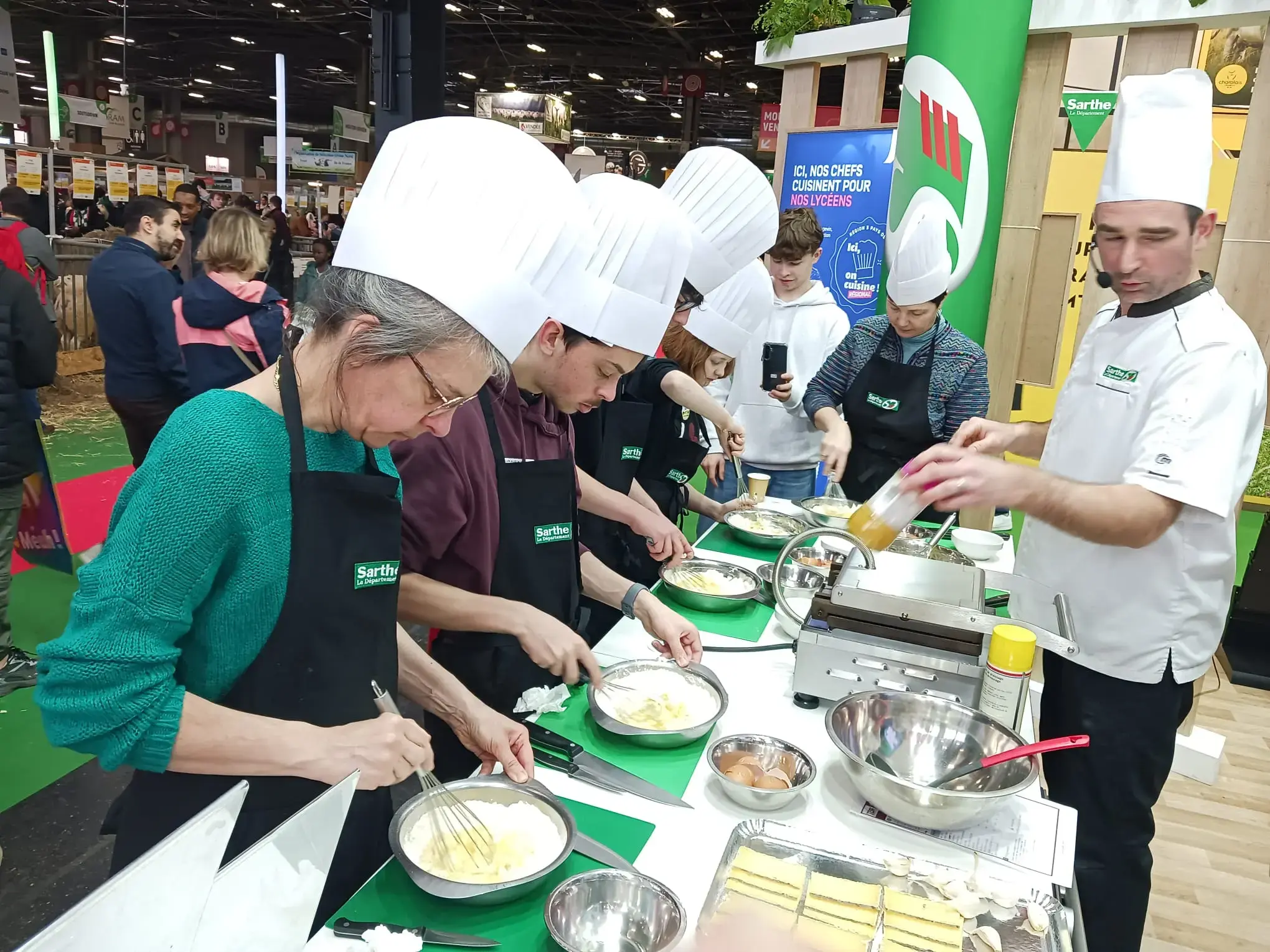 Jusqu'au 24 février, venez rencontrer les producteurs sarthois et chefs de collèges sur le stand. La Sarthe valorisera ses produits locaux, son agriculture, son agritourisme et le savoir-faire des chefs des collèges sarthois. Vous pourrez retrouver sur le stand, le Porc Fermier Cénomans (les Porcs de la Sarthe) et le Bœuf Fermier du Maine, tous deux certifiés par un Label Rouge. Les produits sarthois seront valorisés par les chefs des collèges qui réaliseront, chaque jour, des recettes en direct et animeront des ateliers cuisine avec le public.
