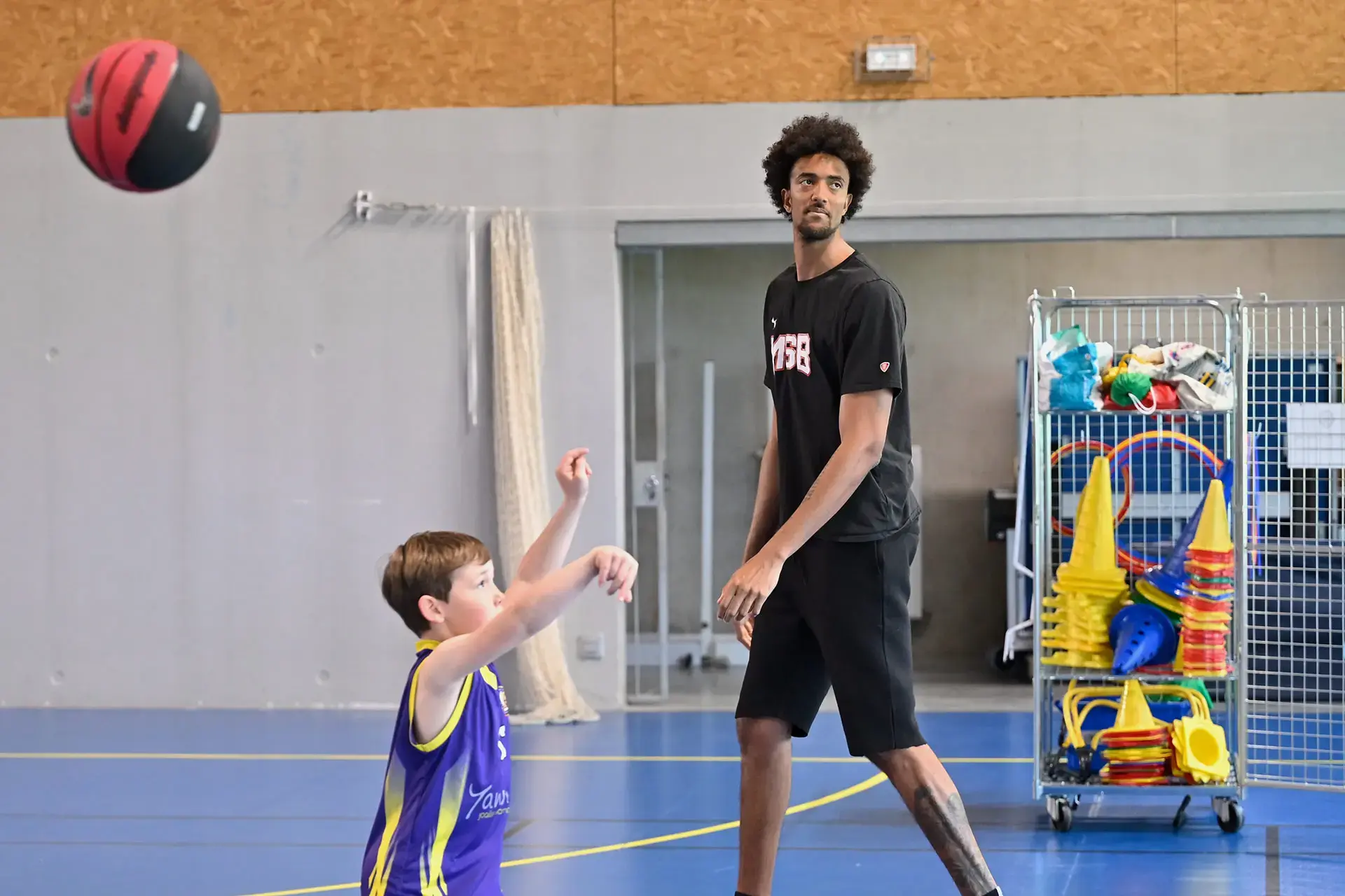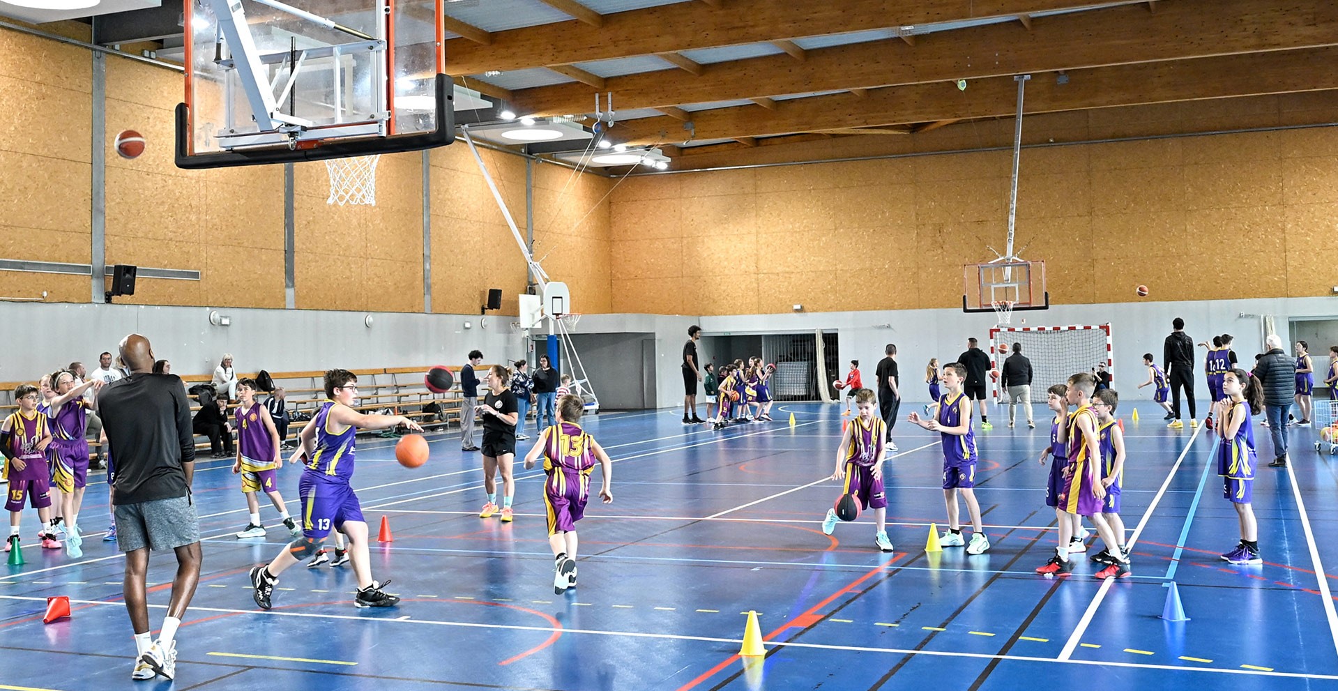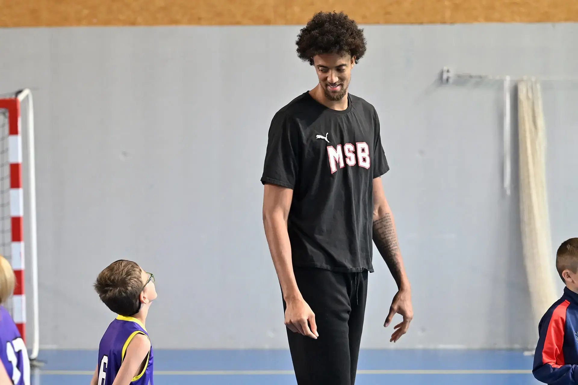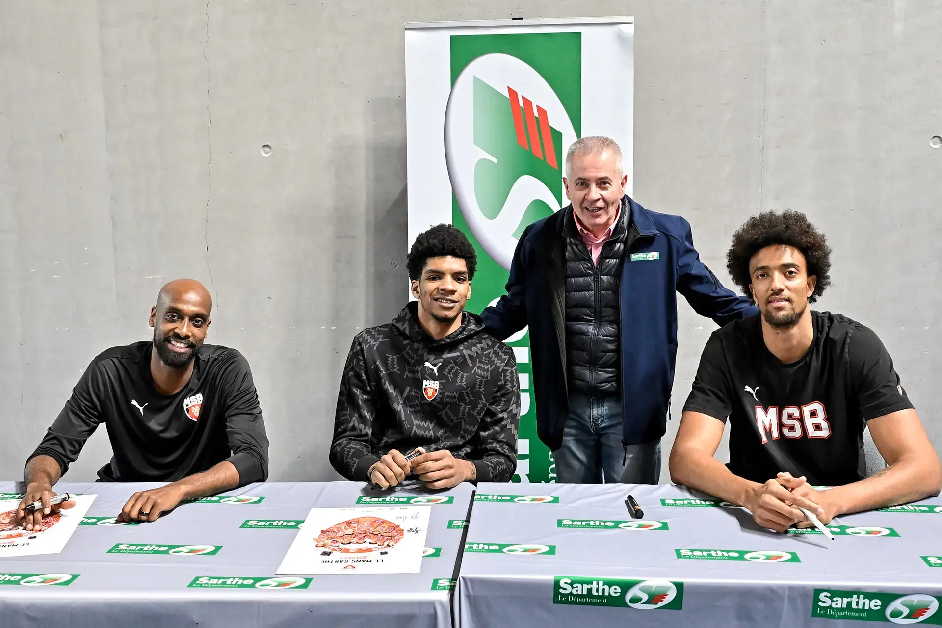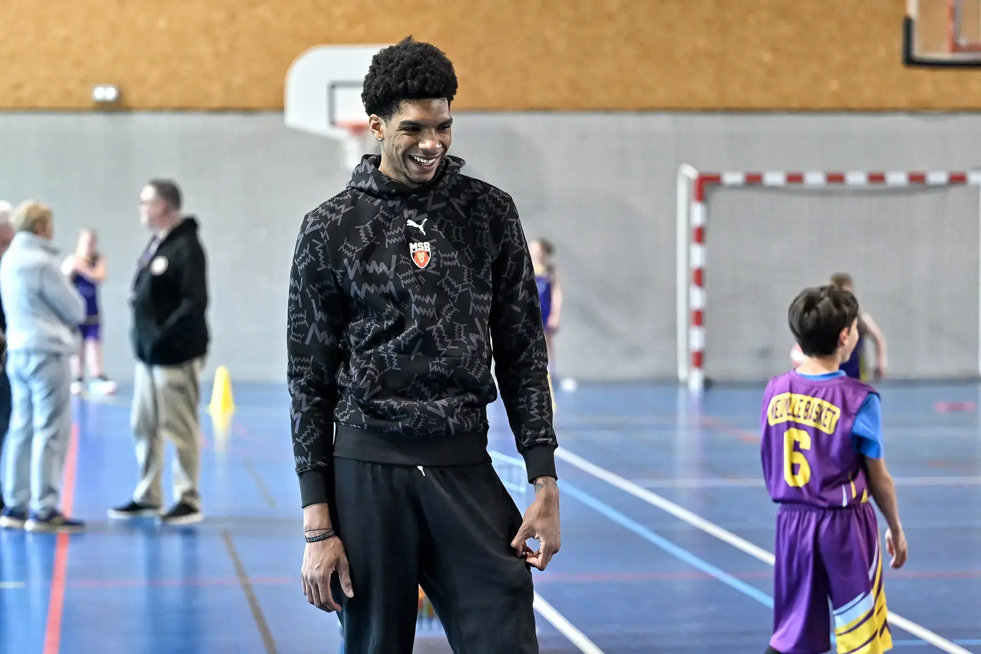 Dans le cadre des actions d'utilité sociale organisées par le Département, Lucas Dufeal, Jonathan Jeanne et Johnny Berhanemeskel se sont rendus au gymnase Yves Pasquier, à Neuville-sur-Sarthe. Les joueurs ont été accueillis par Thierry Lemonier, conseiller départemental du canton. Au programme de l'après-midi : entraînement en ateliers, séance de dédicaces et photos !