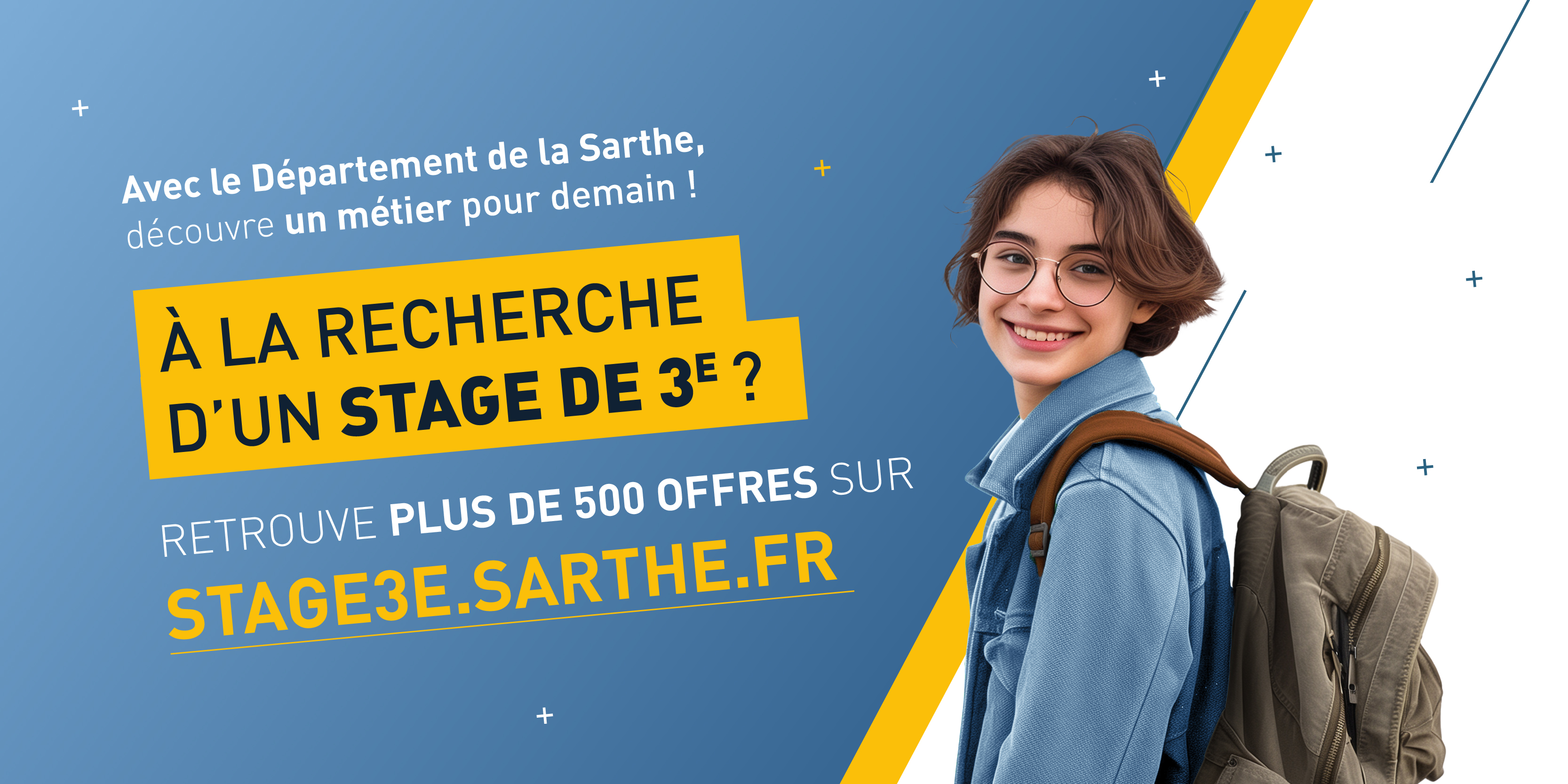 À l’occasion de la journée internationale des stagiaires, le Département rappelle que grâce à la plateforme stage3e.sarthe.fr, les élèves de 3ᵉ peuvent trouver un stage d’observation facilement.