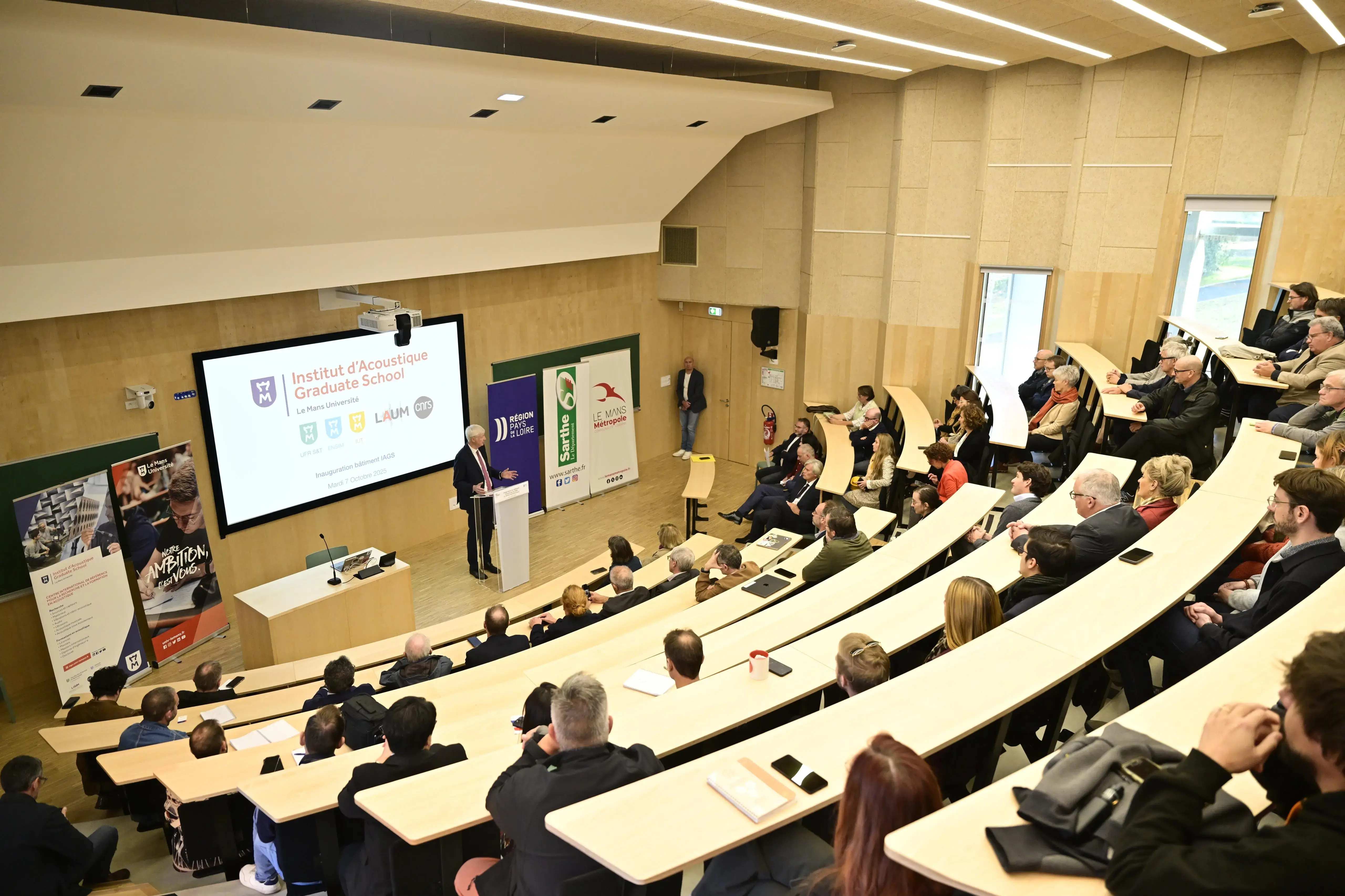 Derrière ces murs flambant neufs, c'est l’aboutissement d’un engagement collectif, et de la concrétisation d’une ambition partagée pour l’avenir. Avec des formations de la licence jusqu'à la recherche de pointe, ce pôle vient soutenir et encourager le travail du Laboratoire d’Acoustique (LAUM), reconnu mondialement. De plus, grâce à cette filière d’excellence, 1 acousticien sur 2 en France est formé en Sarthe !
