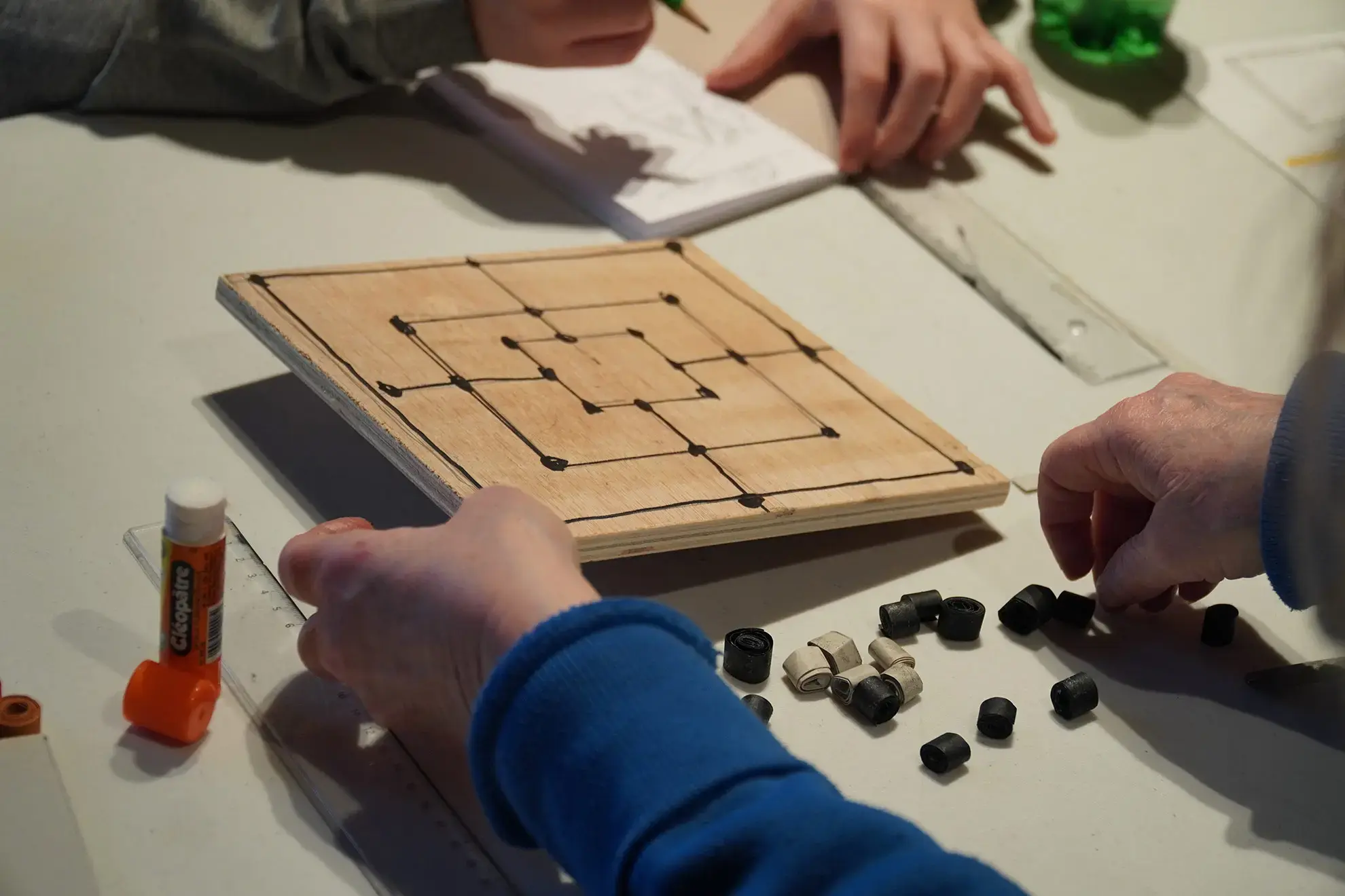 Cet atelier invite les enfants à explorer de façon ludique et créative les manières de s’amuser au Moyen Âge en réalisant leur propre jeu d’alquerque et de merelle puis en apprenant les différentes stratégies à mettre en place. Une occasion unique de comprendre les loisirs de l’époque tout en développant créativité et esprit stratégique.