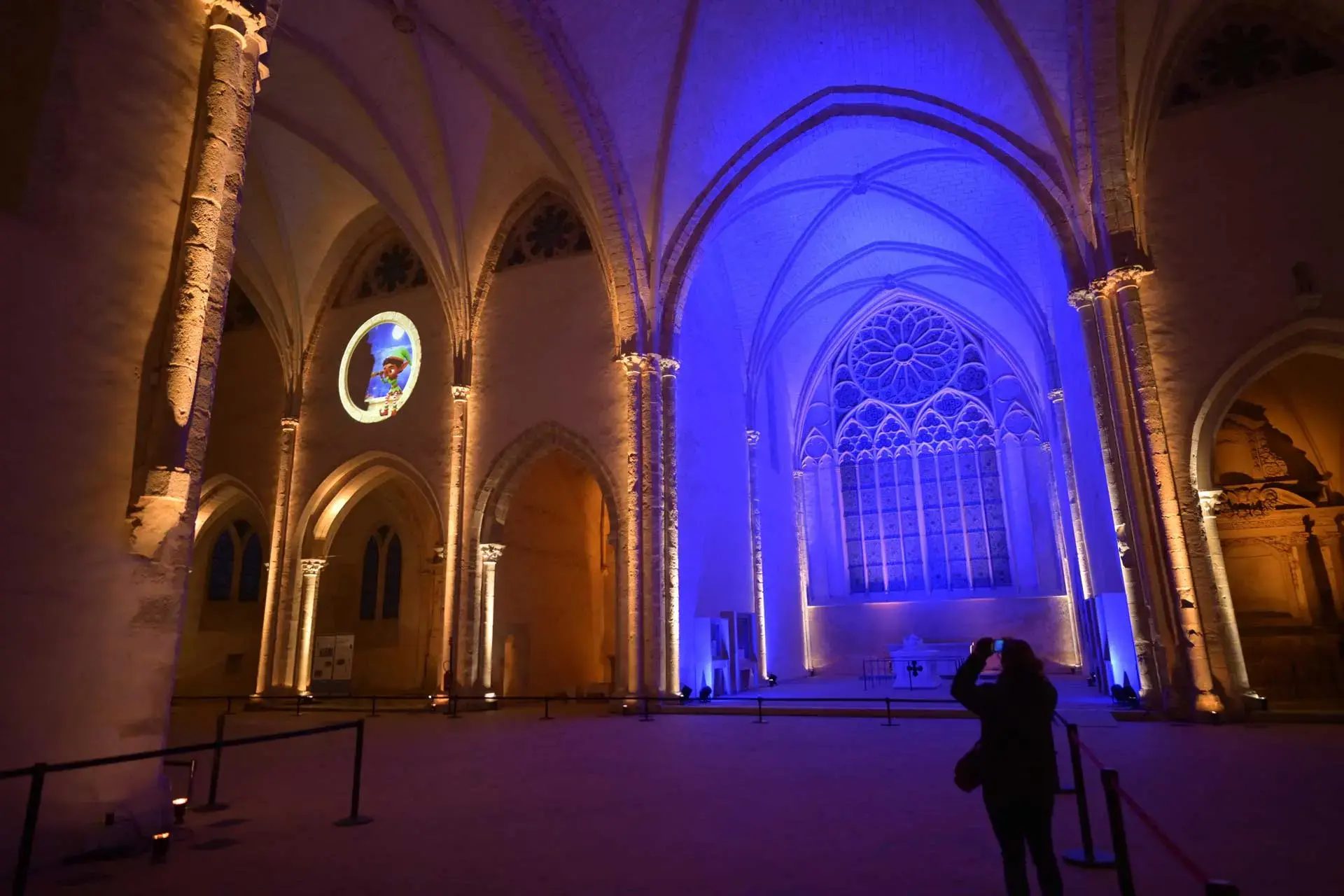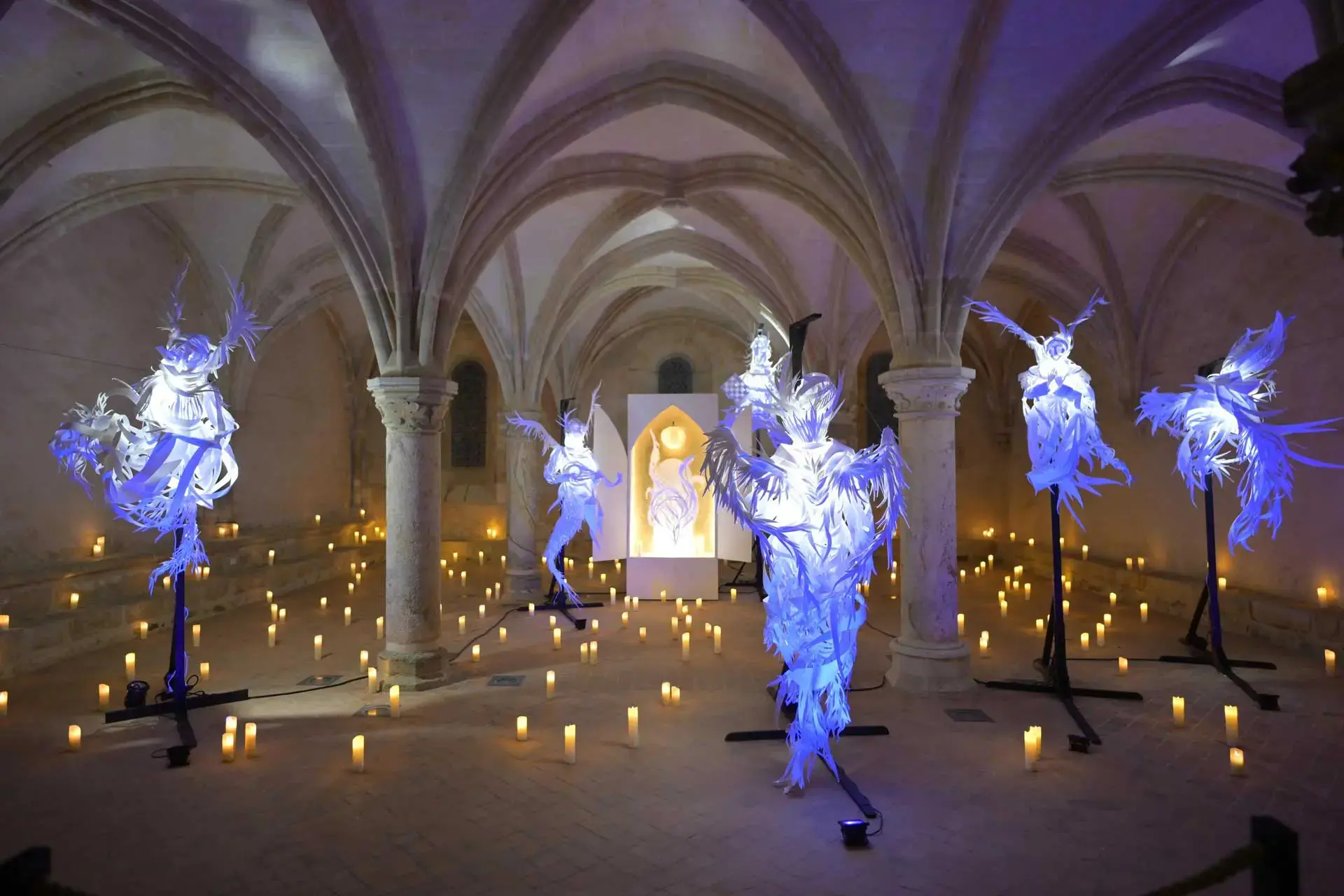 Salle Capitulaire : 200 bougies et sculptures d’Hélène Liger baignées d’une lumière violette