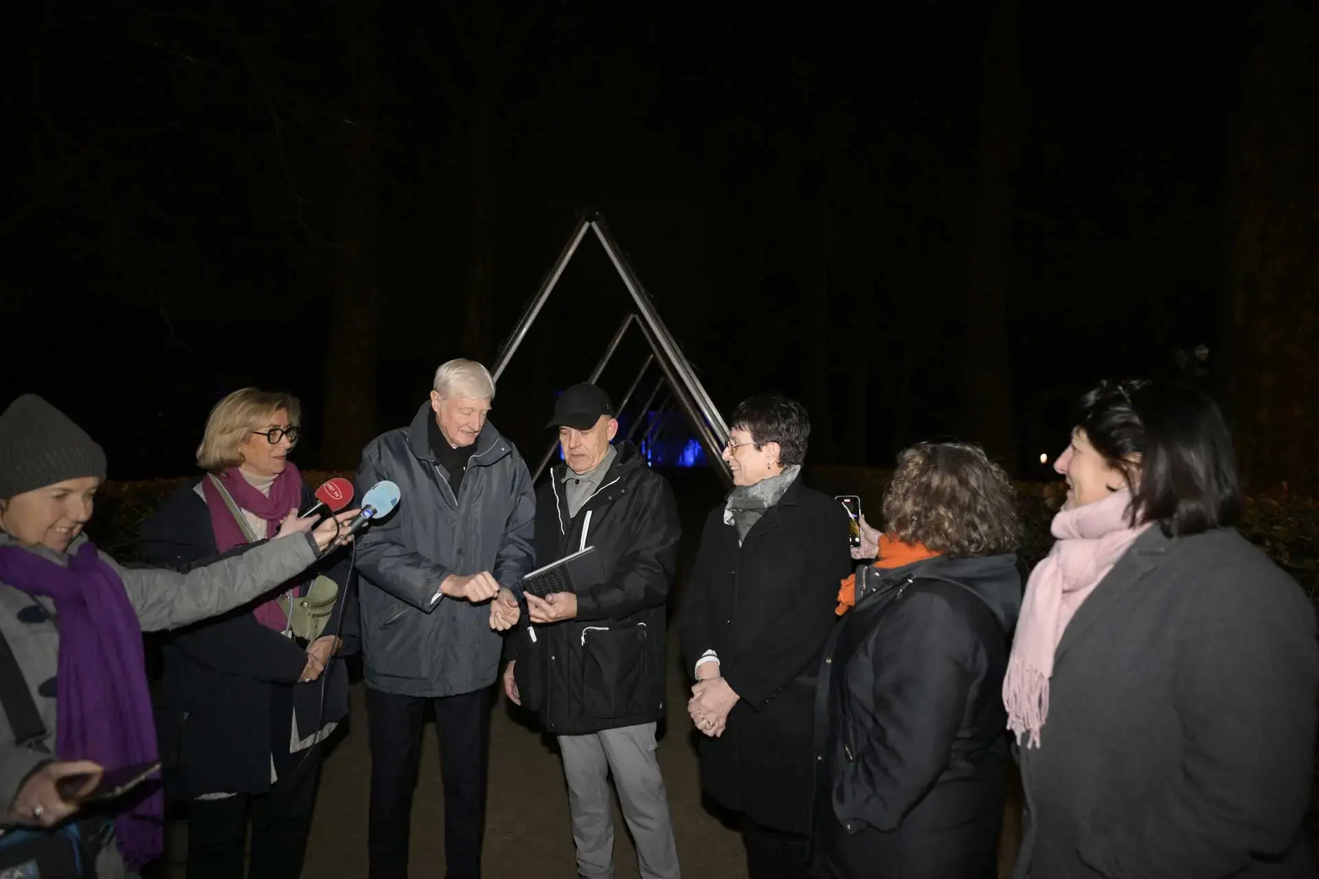 Dominique Le Mèner, Président du Conseil départemental de la Sarthe, Véronique Rivron, première vice-présidente et présidente de la commission chargée de la Culture, Isabelle Berthe et Françoise Lelong, conseillères départementales ont inauguré le Voyage lumineux et sonore, jeudi 27 novembre.