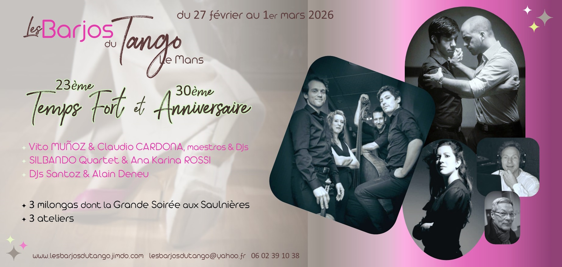 Venez fêter le 30ème anniversaire des Barjos du Tango et la 23ème édition du Temps Fort Tango Le Mans !