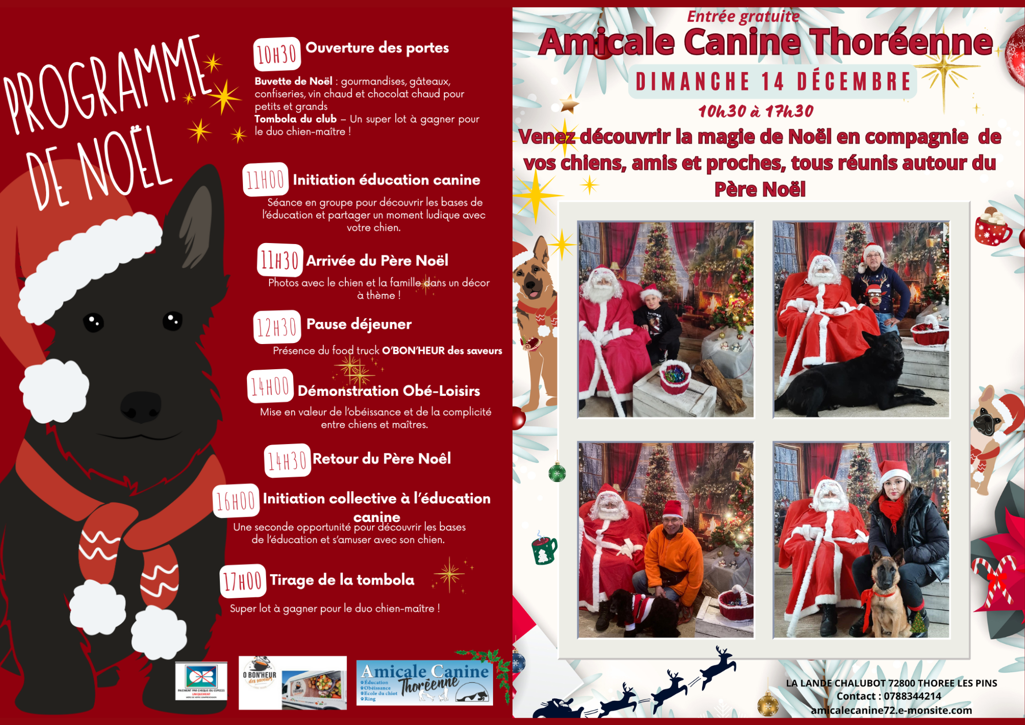 Venez fêter Noël avec vos chiens le dimanche 14 décembre au club canin de Thorée-les-Pins, dans un décor à thème.