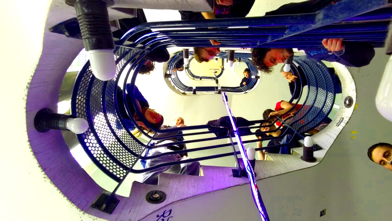 Née d’une collaboration entre les étudiants du DNSEP Design Sonore de TALM-le Mans et l’artiste Sébastien Rouiller, ce dispositif immersif investi le grand escalier de l’école.