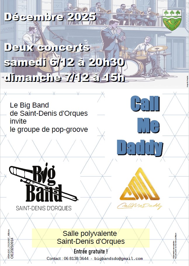 Le Big Band de Saint Denis d’Orques prépare son répertoire en vue du traditionnel concert de la Sainte Cécile tout en y ajoutant un challenge musical plutôt stimulant.