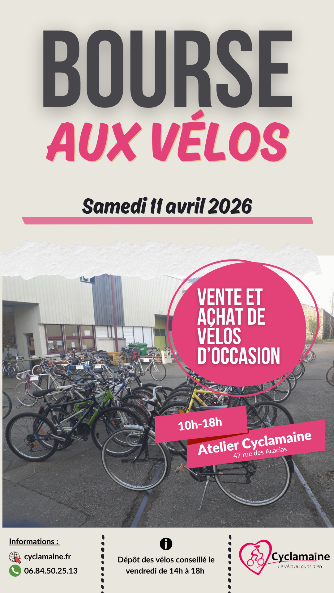 Bourse aux vélos (avec dépôt-vente particuliers) - Asso Cyclamaine