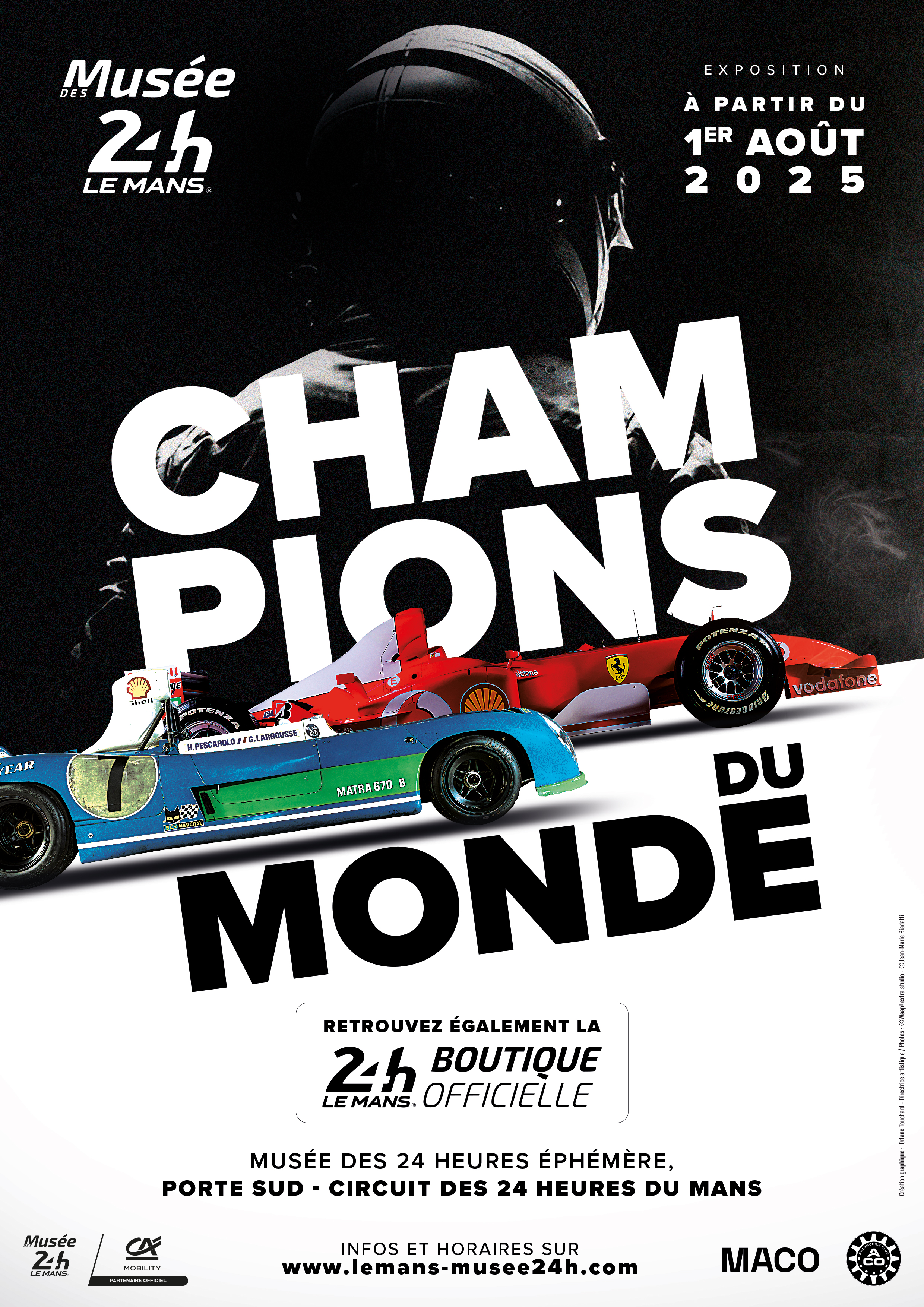 Dès l’ouverture de cette Exposition Temporaire, une toute nouvelle exposition baptisée «Champions du Monde» prendra place. Cette exposition inédite rassemblera des monoplaces de Formule 1 et prototypes d’endurance qui ont marqué l’histoire du sport automobile mondial.