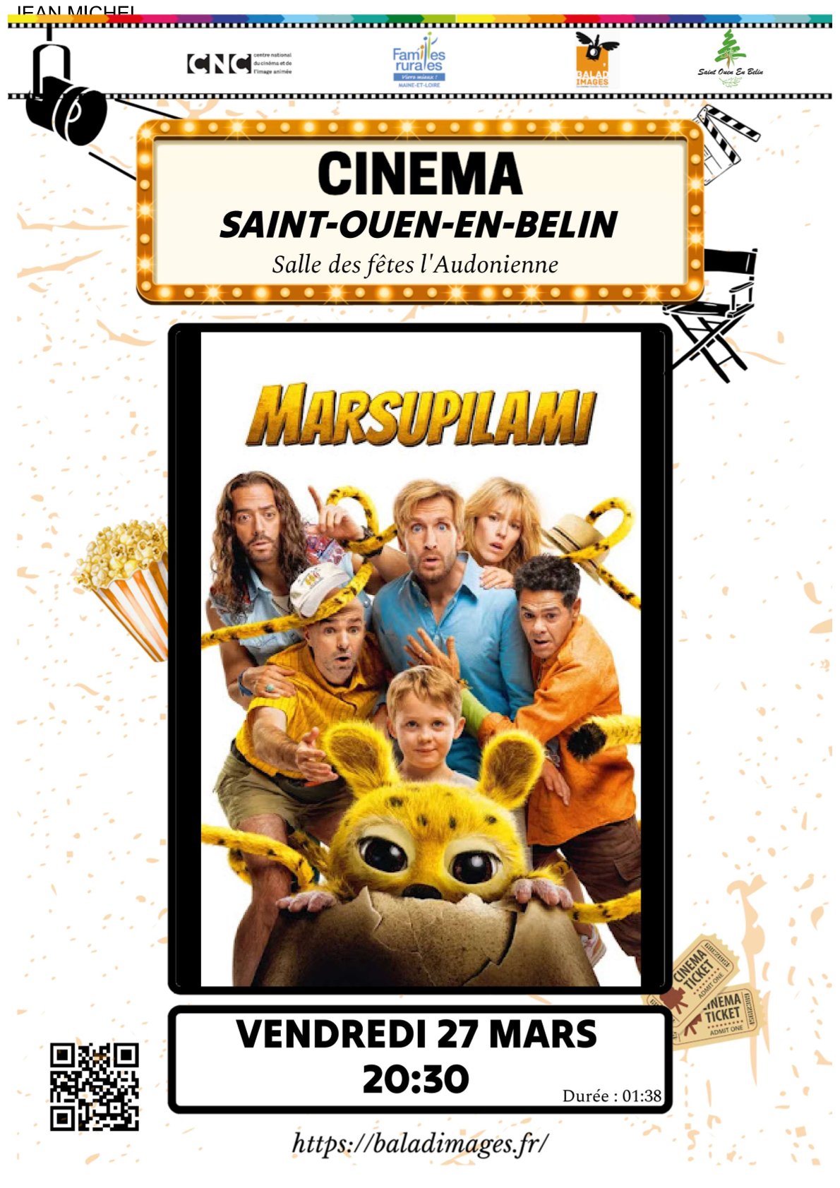 Projection du film "Marsupilami", le vendredi 27 mars à 20h30.