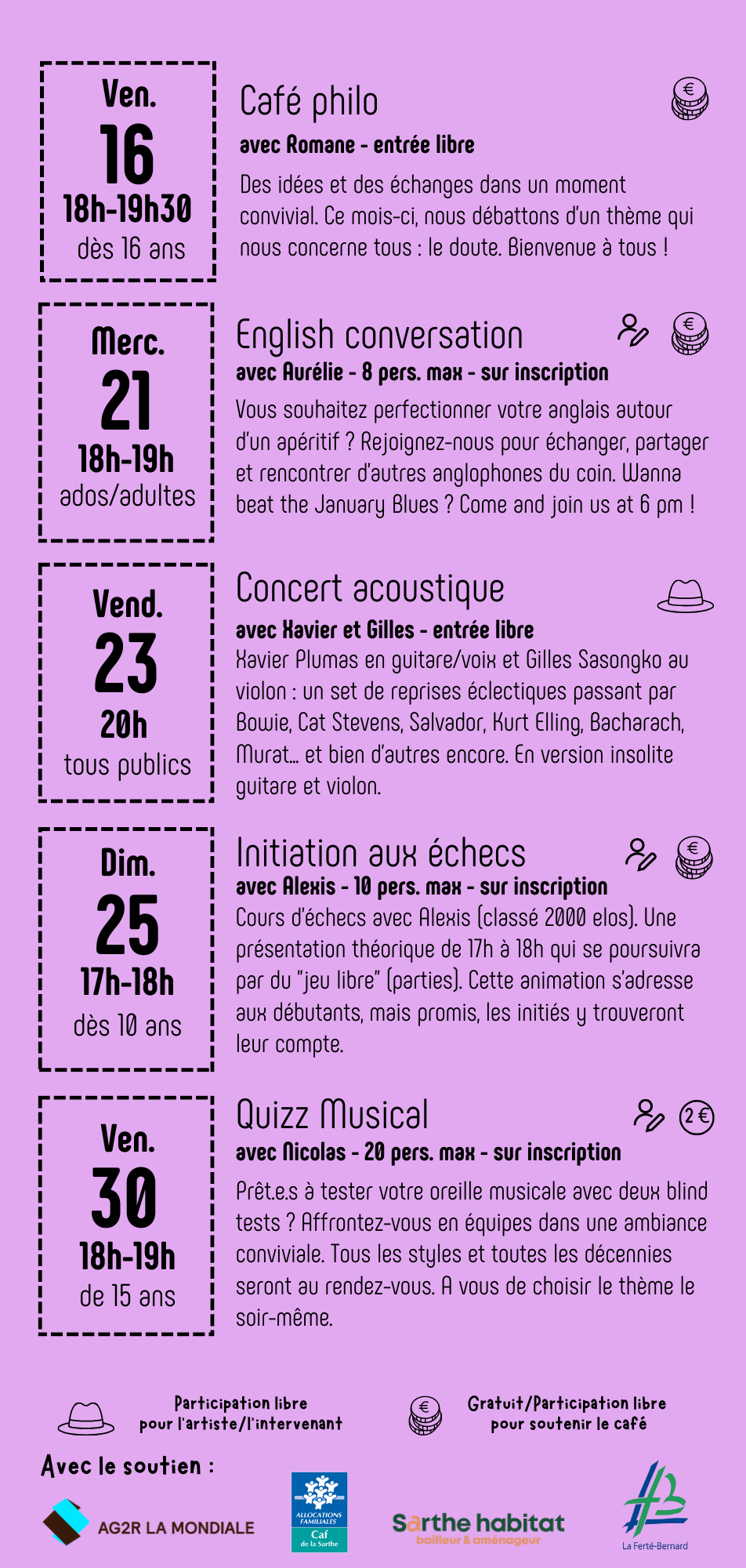 Concert Guitare/voix et Violon. Entrée libre.