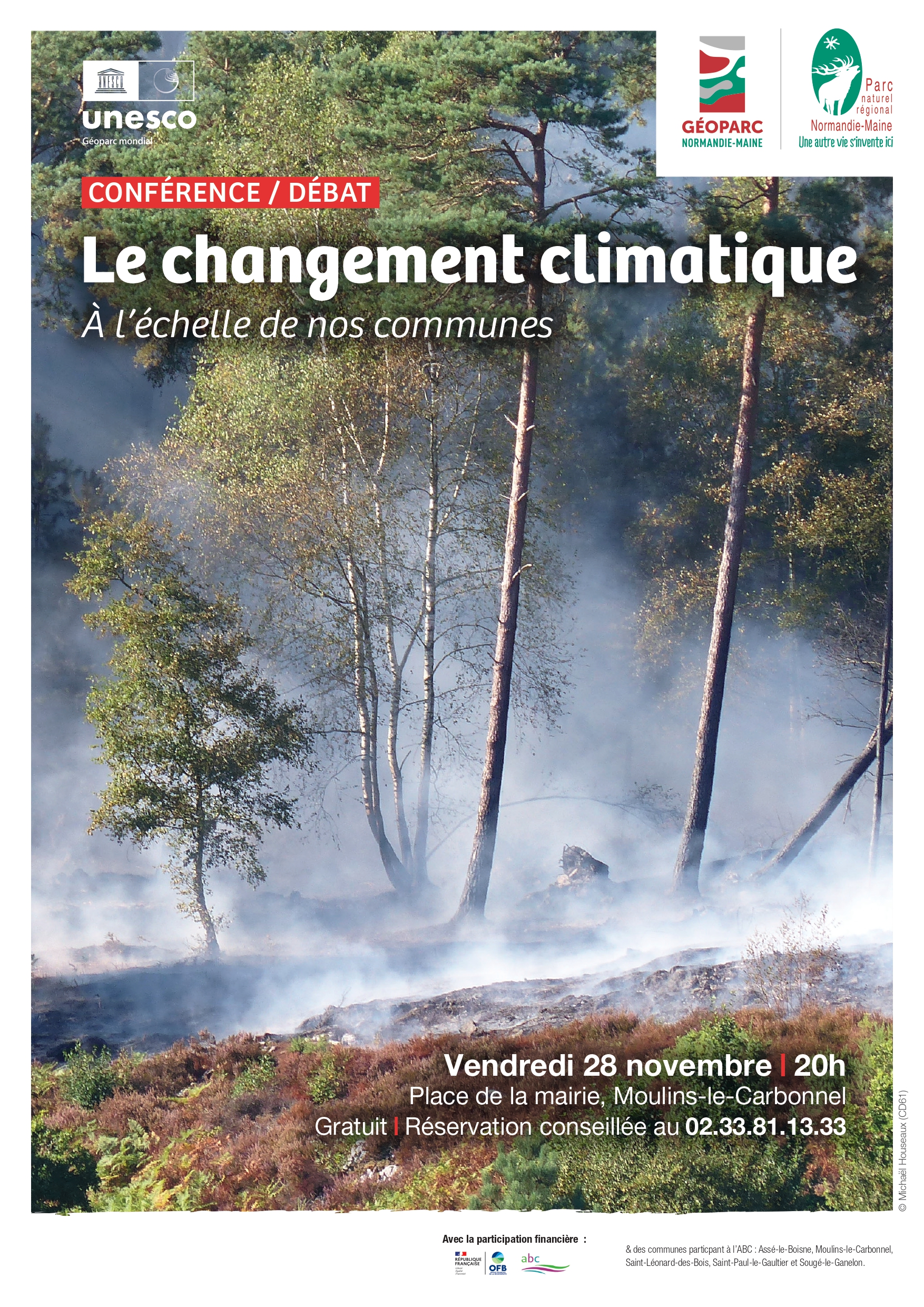 Le vendredi 28 novembre, le Parc naturel régional & Géoparc Normandie-Maine, dans le cadre de son ABC Haute Sarthe Alpes Mancelles, vous invite à une conférence "Le changement climatique à l'échelle de nos communes" à Moulins-le-Carbonnel !