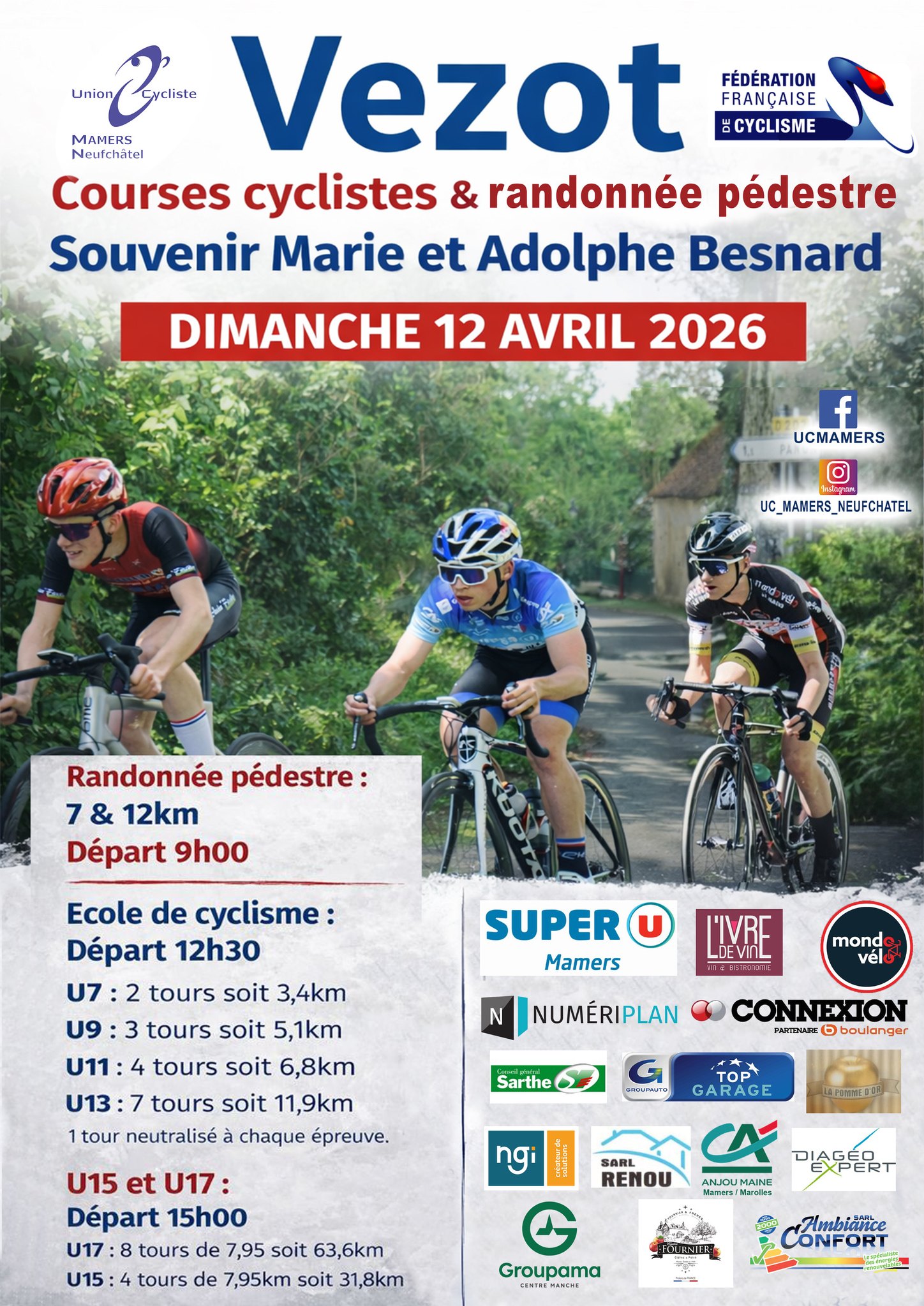 L' épreuve aura lieu le dimanche 12 avril 2026 à Vezot avec au programme :