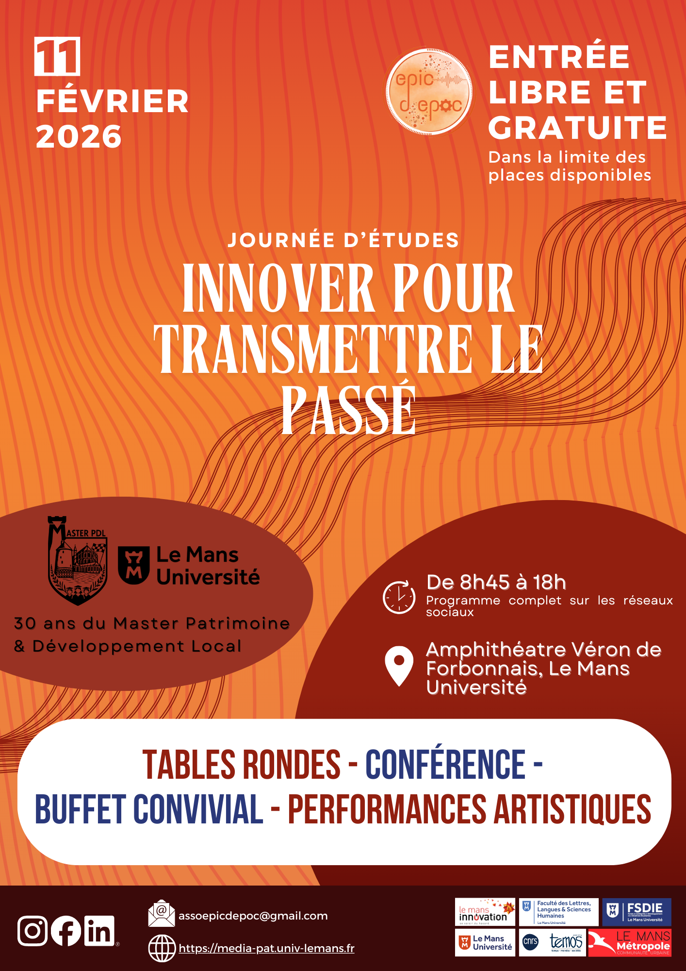 Ouverte à toutes et à tous, cette journée réunira étudiants, enseignants-chercheurs et professionnels du patrimoine autour de la thématique : « Innover pour transmettre le passé : 30 ans du Master Patrimoine et Développement local ».