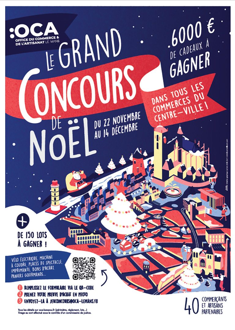 Pour la 3ème année consécutive, l'Office du Commerce et de l'Artisanat du Mans organise son grand jeu concours de Noël, qui participe à l'attractivité commerciale du centre-ville pendant les fêtes de fin d'année.