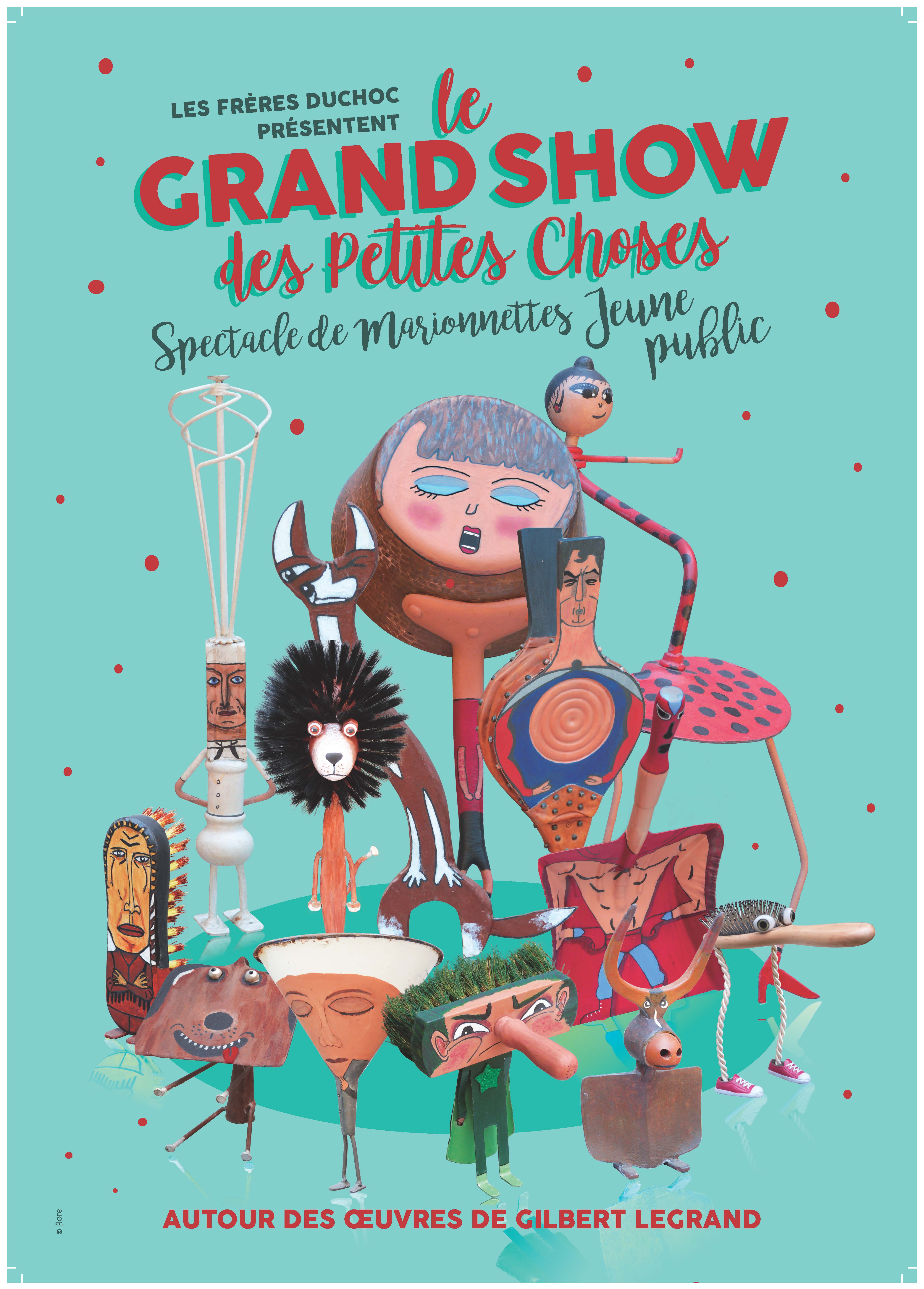 Résumé : Et si se cachaient sous les objets de tous les jours des super-héros, des danseurs de flamenco, des animaux et tout un tas d'autres personnages prêts à prendre vie à tout instant. En créant ce spectacle autour des incroyables objets du plasticien Gilbert Legrand, les Frères Duchoc nous offrent un moment de théâtre d’objets plein de surprises, d’humour, de musique et de belles choses à regarder.