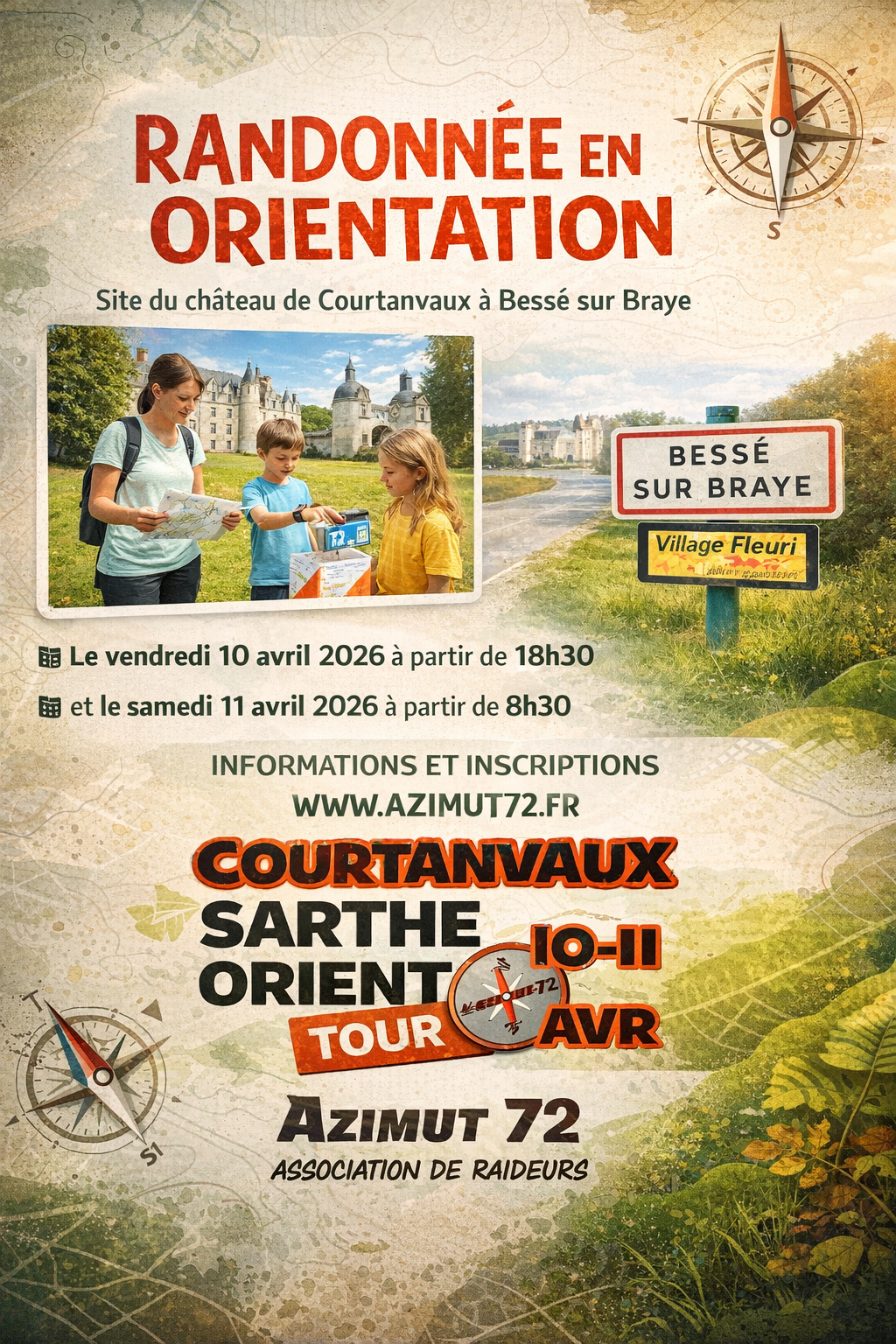 Cette Rand'Onnée en orientation est organisée par l‘association Azimut 72 en nocturne le vendredi 10 avril à partir de 18h30 et le samedi 11 avril à partir de 8h30. Cette activité amusante est destinée aux petits et grands, l'allure est libre. Les participants auront à leur disposition une carte précise des lieux afin de trouver les balises dissimulées dans le parc du château.