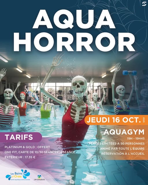 L’équipe vous donne rendez-vous le jeudi 16 octobre de 19h à 19h45 pour un aquagym terrible et terrifiant !