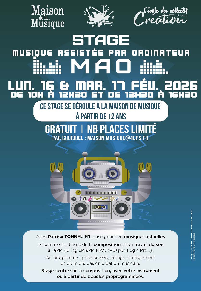 Un stage destiné aux adolescents et adultes souhaitant s’initier ou se perfectionner à la création musicale numérique (composition, enregistrement, mixage).