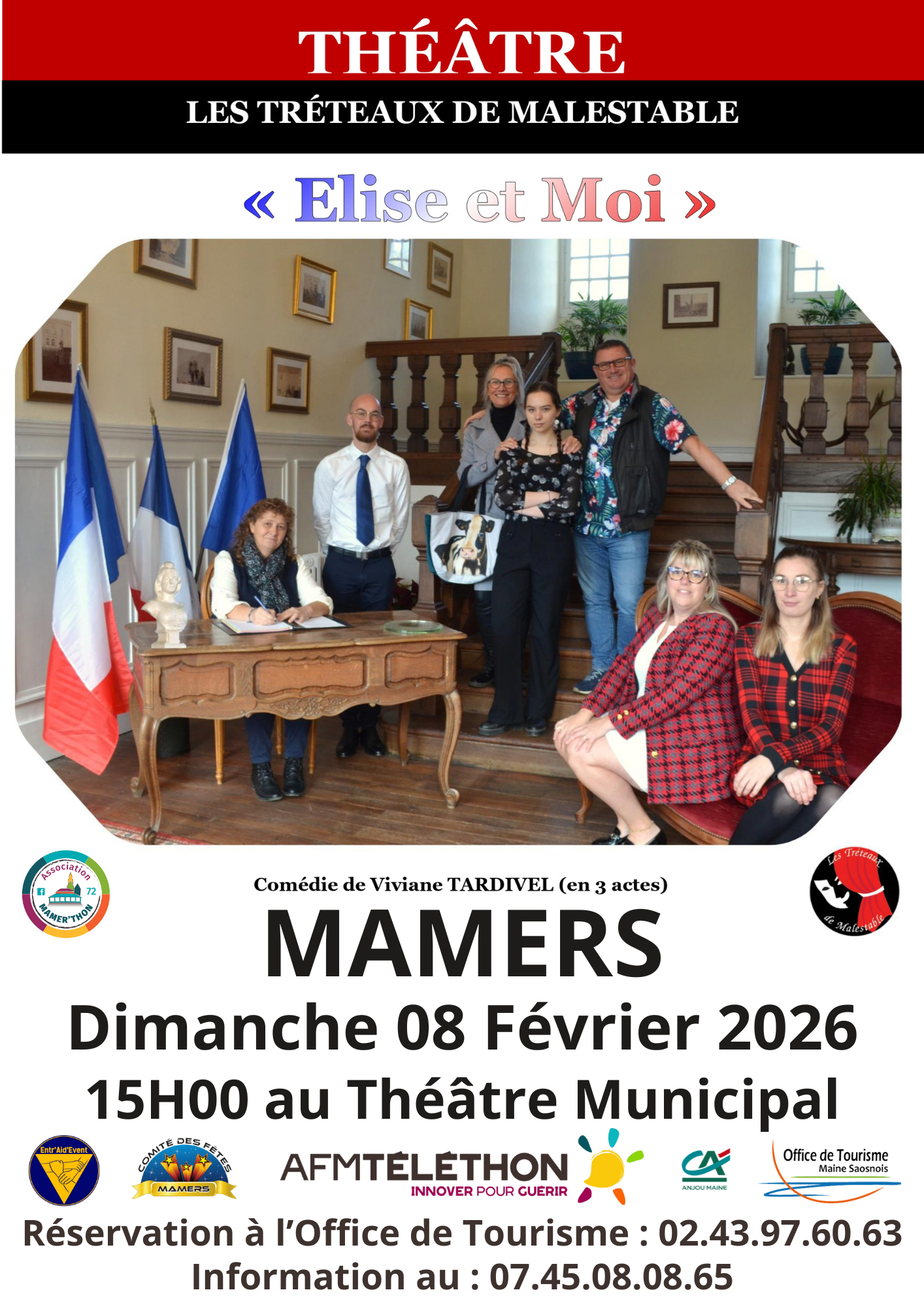 L'association Mamer'Thon invite la troupe "Les Tréteaux de Malestable" et vous propose une représentation de la pièce de théâtre de Viviane Tardivel "Elise et Moi".