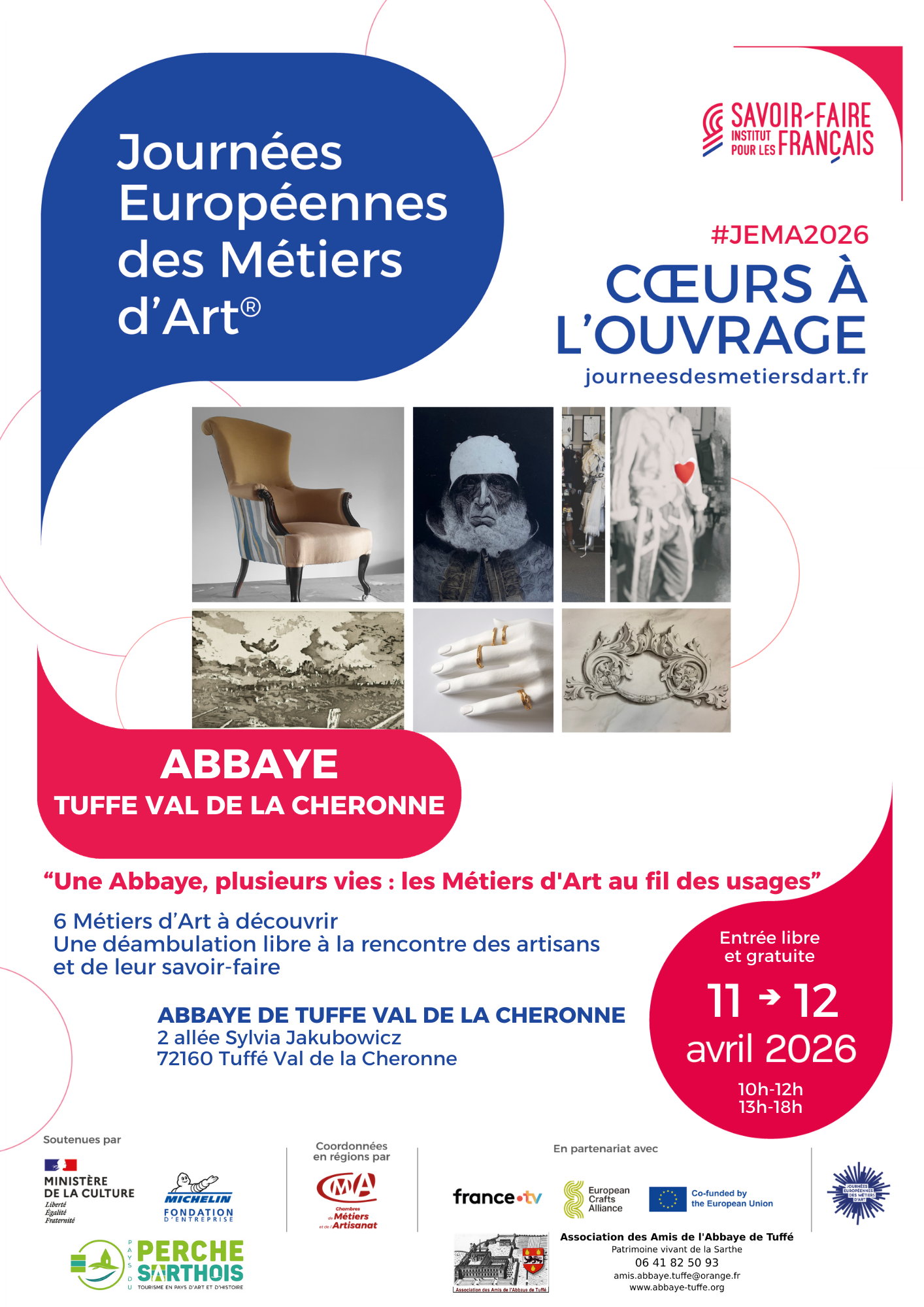 Au programme : rencontre avec 6 métiers d'art en déambulation libre. Échangez avec des passionnés et découvrez leurs gestes et savoir-faire tout en explorant les différents espaces de l'abbaye de Tuffé et ses jardins.