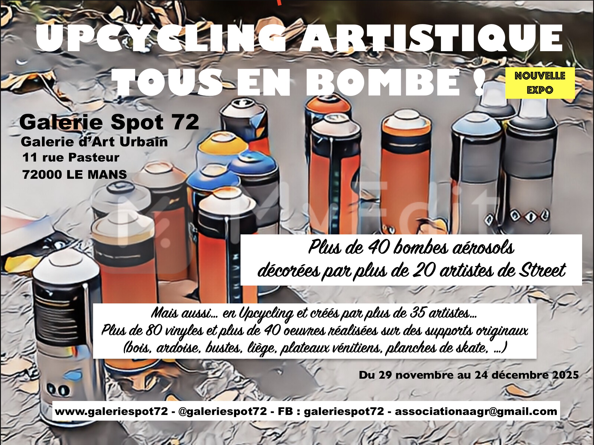 Plus de 20 artistes de Street Art ont créer plus de 40 œuvres sur des Bombes aérosols vides, spécialement pour cette exposition