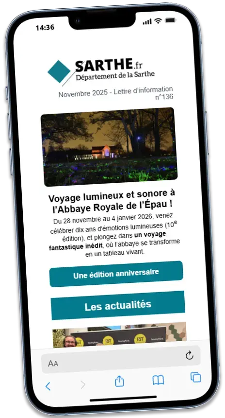Pour vous abonner à la lettre d'information du Département de la Sarthe, merci de remplir ce formulaire.