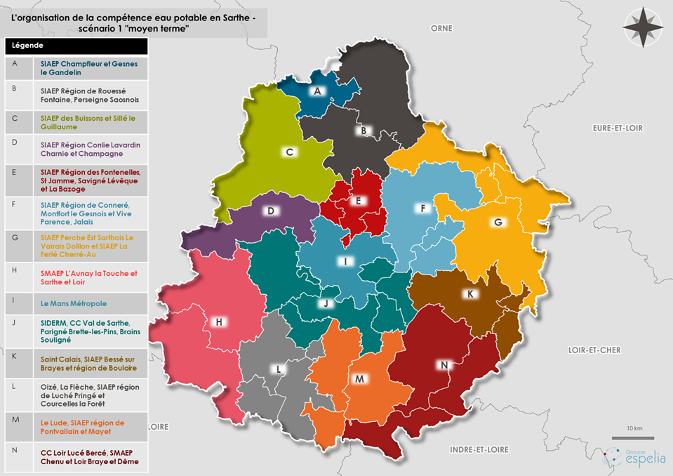 Cette étude a notamment permis de dégager plusieurs scénarios de structuration à plus ou moins long terme (exemple de carte ci-dessous).