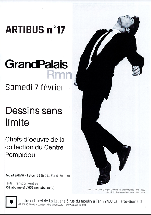 La collection du Cabinet d’art graphique du Centre Pompidou est l’un des plus importants ensembles au monde d’œuvres sur papier des 20e et 21e siècles. Ce fonds exceptionnel par sa richesse et sa diversité n’a encore jamais fait l’objet d’une grande exposition qui lui soit exclusivement consacrée. « Dessins sans limite » est l’occasion de révéler pour la première fois ces trésors inestimables et de comprendre comment ce médium s’est totalement réinventé au 20e siècle. ..." (Extrait du site du Centre Pompidou)