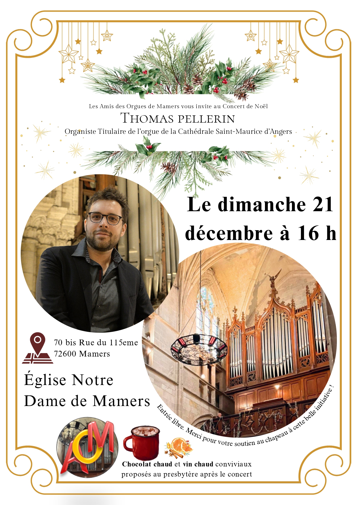 Thomas Pellerin, organiste de la Cathédrale d'Angers, va faire sonner l'orgue de l'église Notre-Dame de Mamers, à l'occasion des festivités de noël.