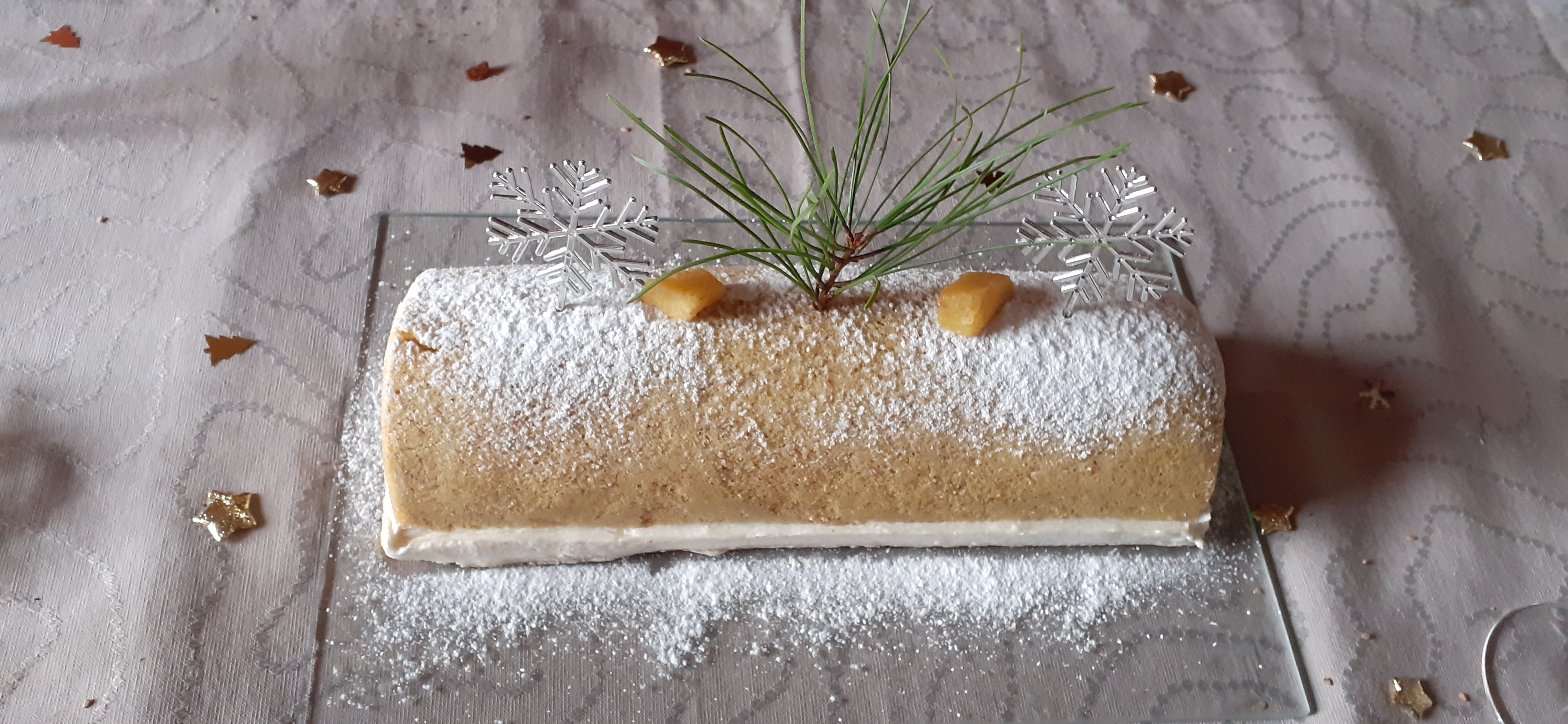 Bûche poire chocolat aux marrons et éclats de nougatine