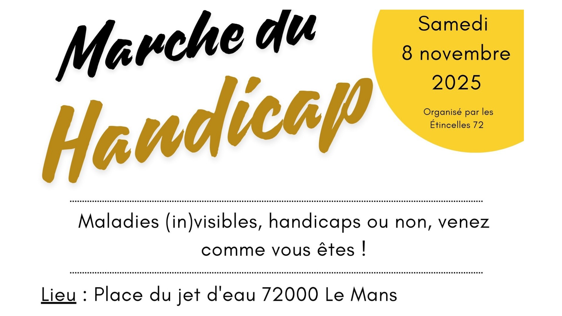 L’association Les Étincelles 72 a le plaisir de vous annoncer la tenue de la 2ᵉ édition de la Marche du Handicap, qui se déroulera le samedi 8 novembre 2025 au Mans.