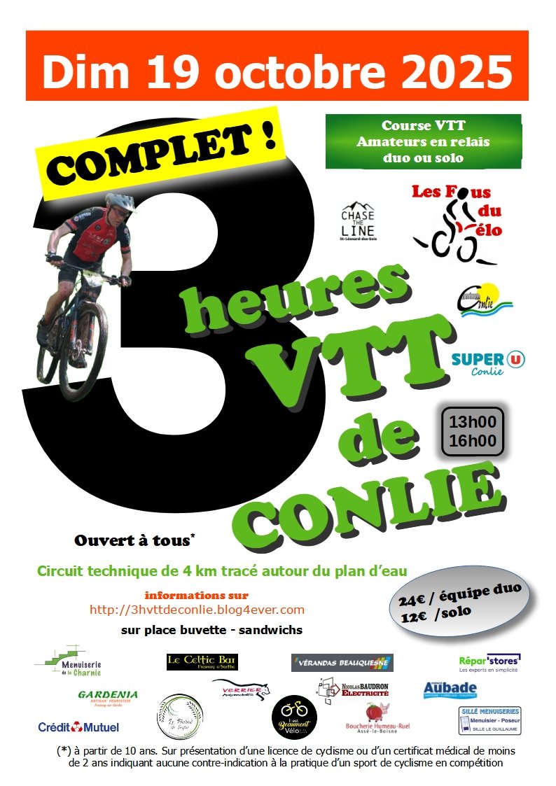 COURSE VTT amateurs de 3 heures autour du plan d'eau de Conlie. 🚲