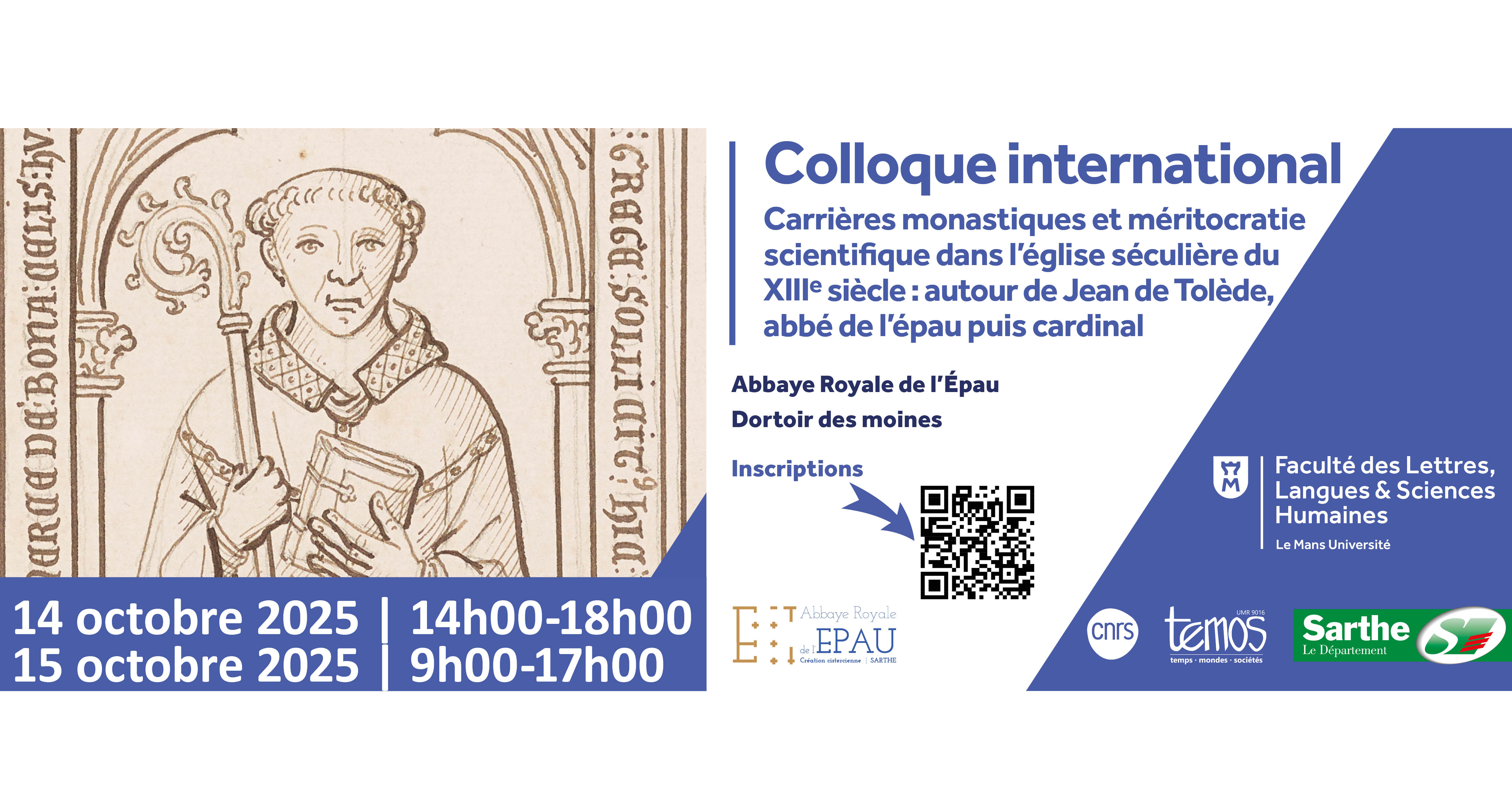 Colloque international : "Carrières monastiques et méritocratie scientifique dans l’église séculière du XIIIe siècle : autour de Jean de Tolède, abbé de l’Épau puis cardinal"