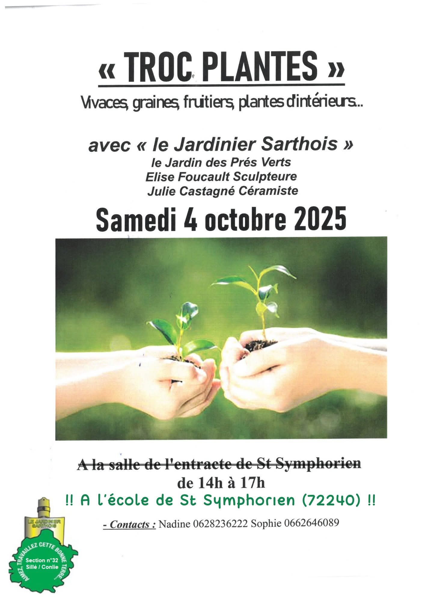 Le Jardinier Sarthois section Sillé / Conlie vous donne rendez-vous pour un après-midi convivial pour 𝘁𝗿𝗼𝗾𝘂𝗲𝗿 𝘃𝗼𝘀 𝘃𝗶𝘃𝗮𝗰𝗲𝘀, 𝗴𝗿𝗮𝗶𝗻𝗲𝘀, 𝗳𝗿𝘂𝗶𝘁𝗶𝗲𝗿𝘀, 𝗽𝗹𝗮𝗻𝘁𝗲𝘀 𝗱’𝗶𝗻𝘁𝗲́𝗿𝗶𝗲𝘂𝗿… chacun repartira avec de nouvelles merveilles pour son jardin !