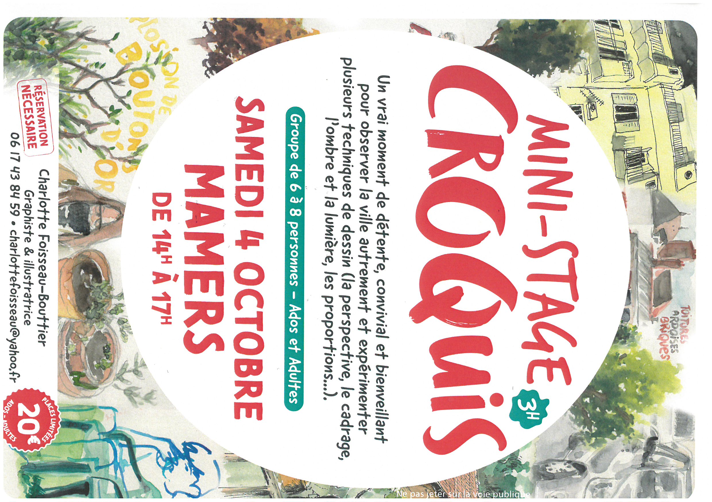 Infos et réservations au 06 17 43 84 59 - charlottefoisseau@yahoo.fr