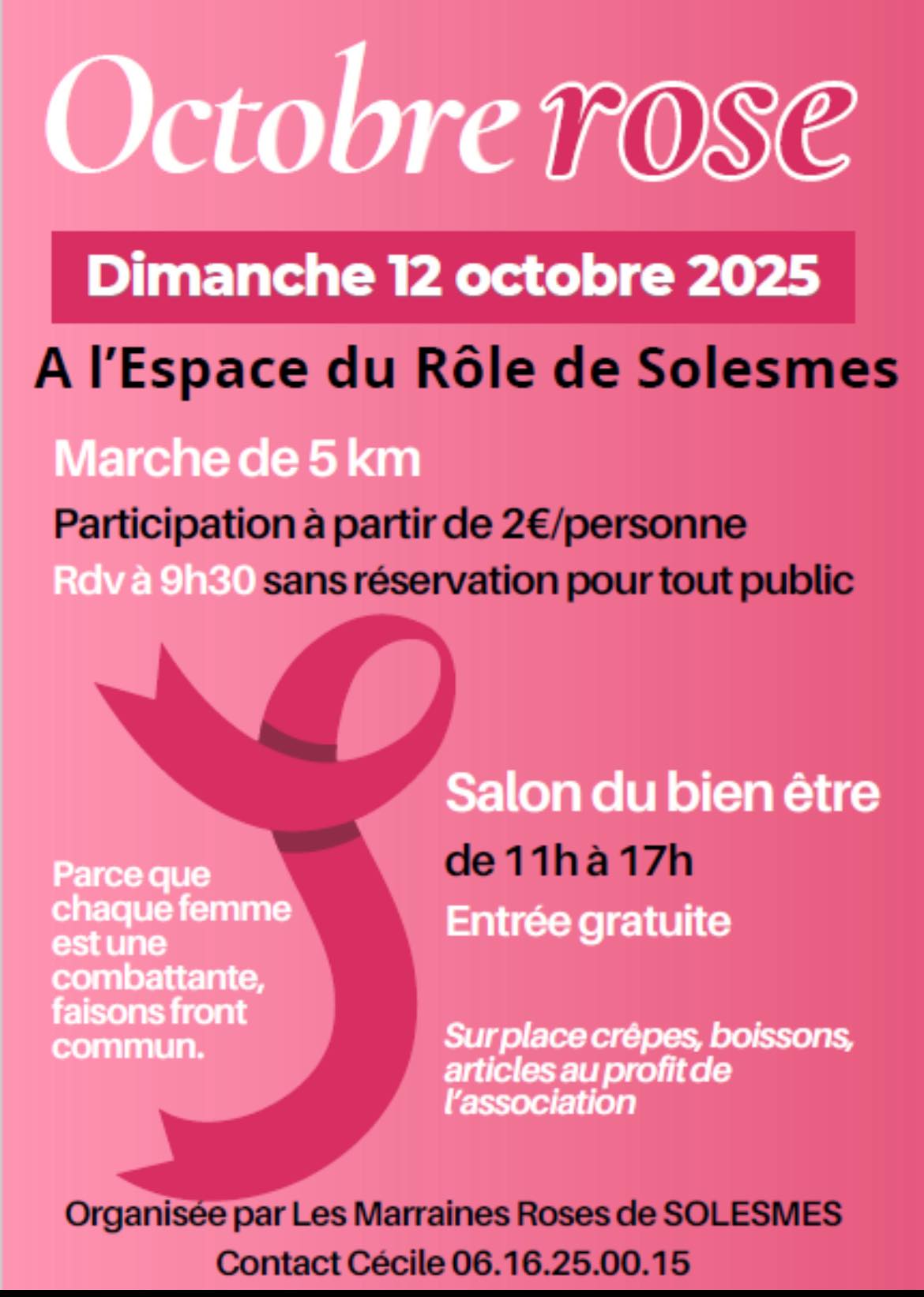 Après une marche de 5 km, venez faire un tour au salon du Bien être. Sur place : crêpes et boissons ainsi que des articles (ventes au profit de l'association)