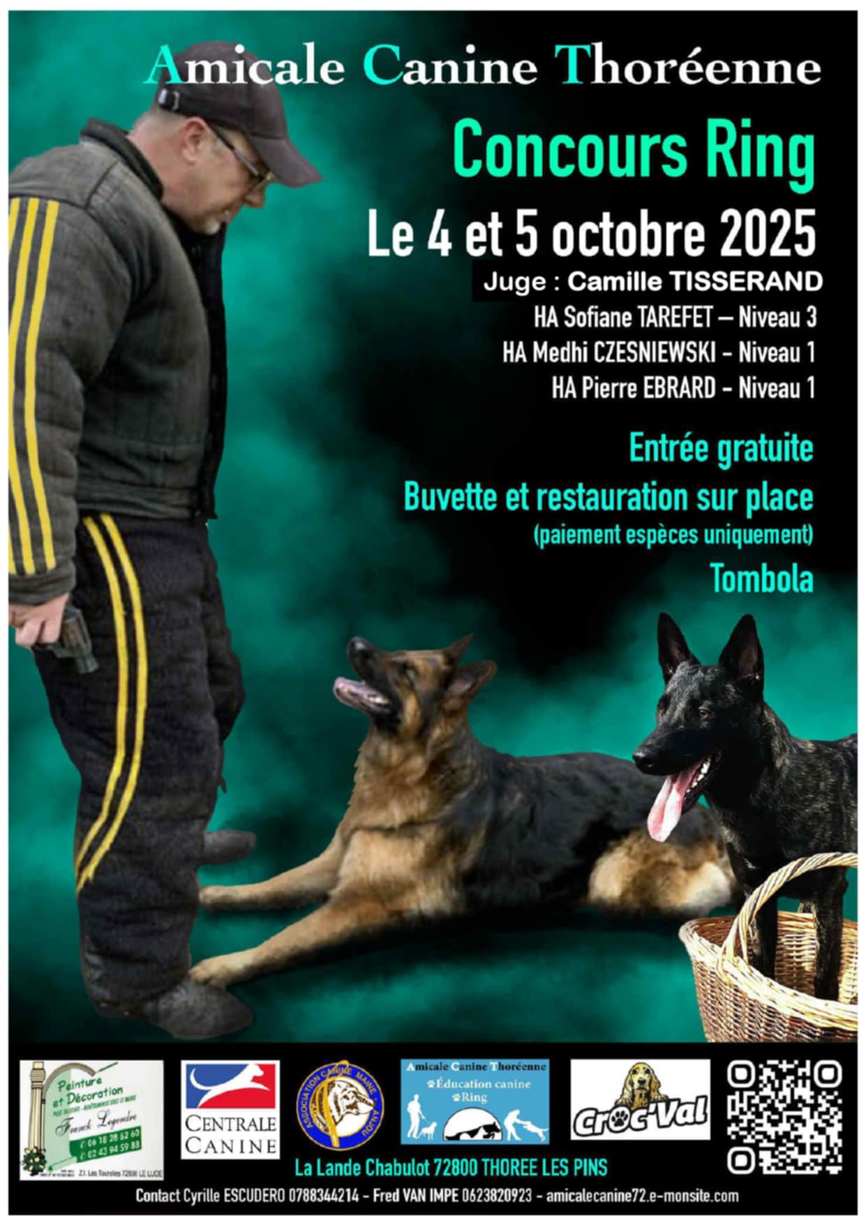 Le temps d’un week-end, venez découvrir la discipline spectaculaire du Ring Sportif, un concours canin où les chiens et leurs maîtres démontrent leur obéissance, leurs sauts et leur mordant sportif. profitez d’un événement gratuit ouvert à tous, pour admirer la complicité et le travail impressionnant de chaque duo.