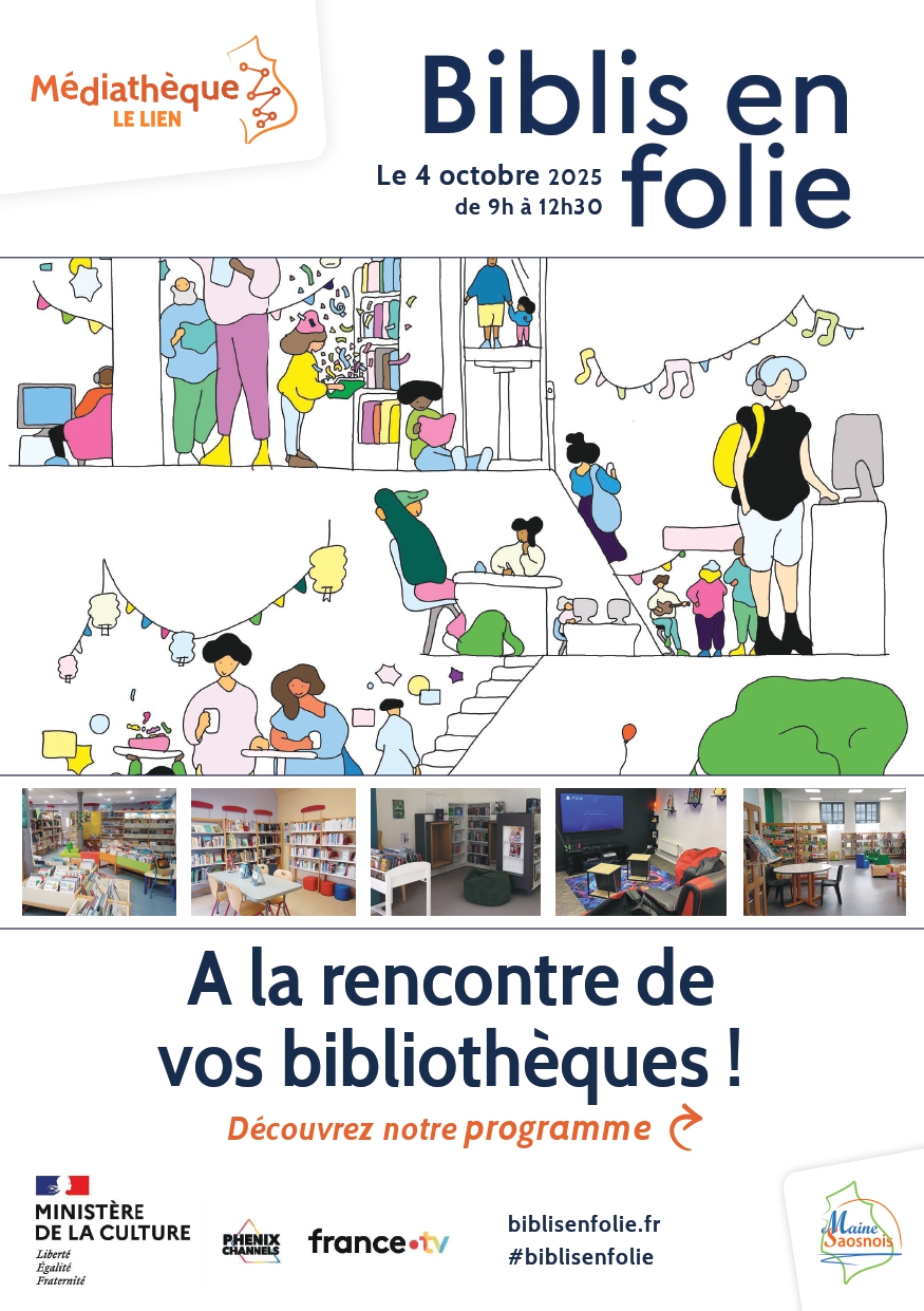 A l'occasion de cette deuxième édition des journées nationales dédiées aux bibliothèques et médiathèques, le réseau Médiathèque Le Lien vous invite à (re)découvrir votre bibliothèque de proximité et à participer aux nombreux évènements gratuits et festifs qui sont proposés.