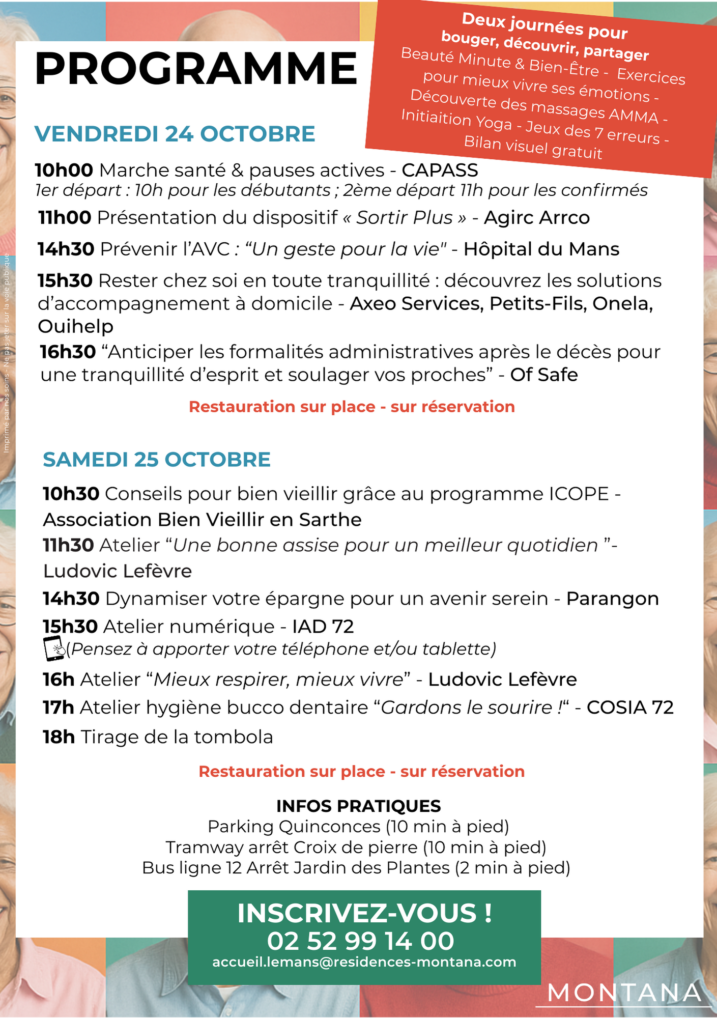 Les 24 et 25 octobre 2025, la Résidence Services Seniors Montana Le Mans organise son tout premier Salon des Seniors !