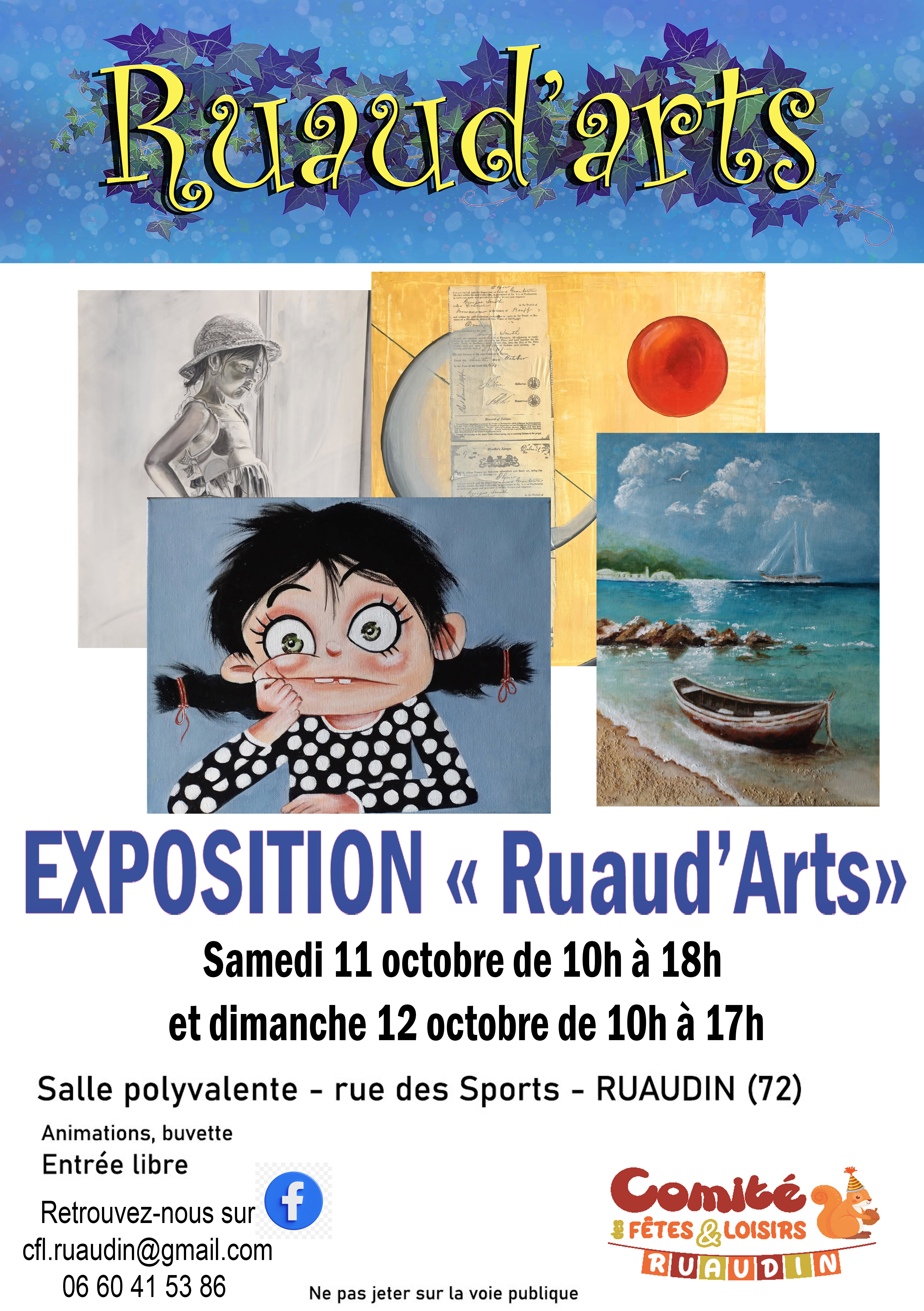 Dans le cadre de la promotion de l’art dans la commune de Ruaudin, le Comité des Fêtes et des Loisirs (CFL) de la ville a le plaisir de vous présenter son exposition « RUAUD’ARTS ».