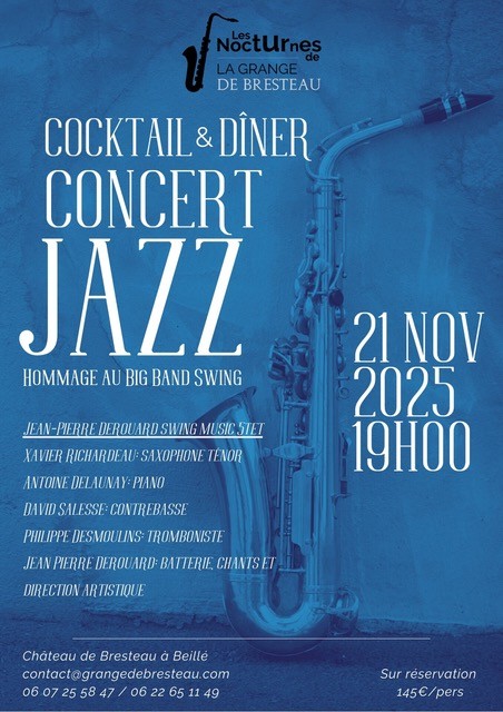 Le château de Bresteau organise une soirée exceptionnelle lpour un dîner-concert placé sous le signe du swing et du raffinement. Thème de la soirée : Hommage au Big Band Swing.